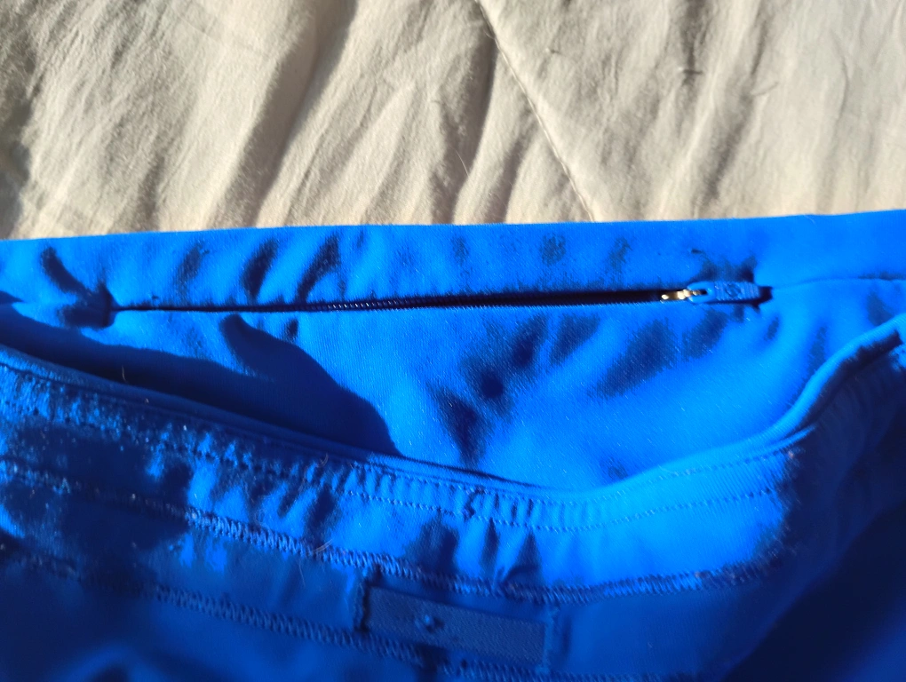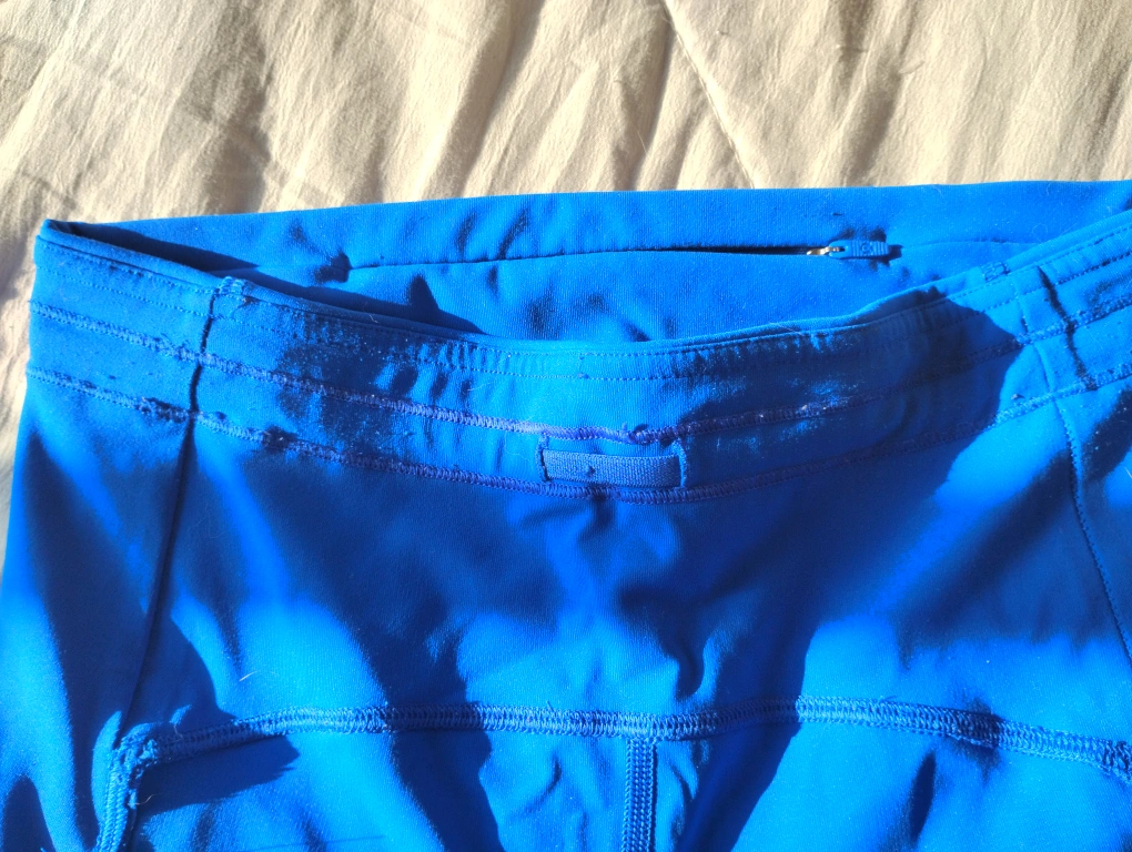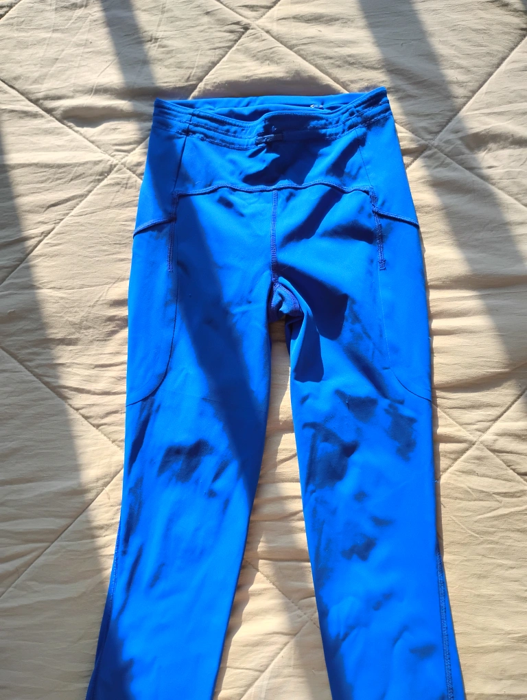 Selling a pair of Lululemon running pants in a vibrant blue colour. They're in good condition and perfect for your next run or workout! There's a small zipper pocket in the back. only one spot has one piece of piling shown in pics