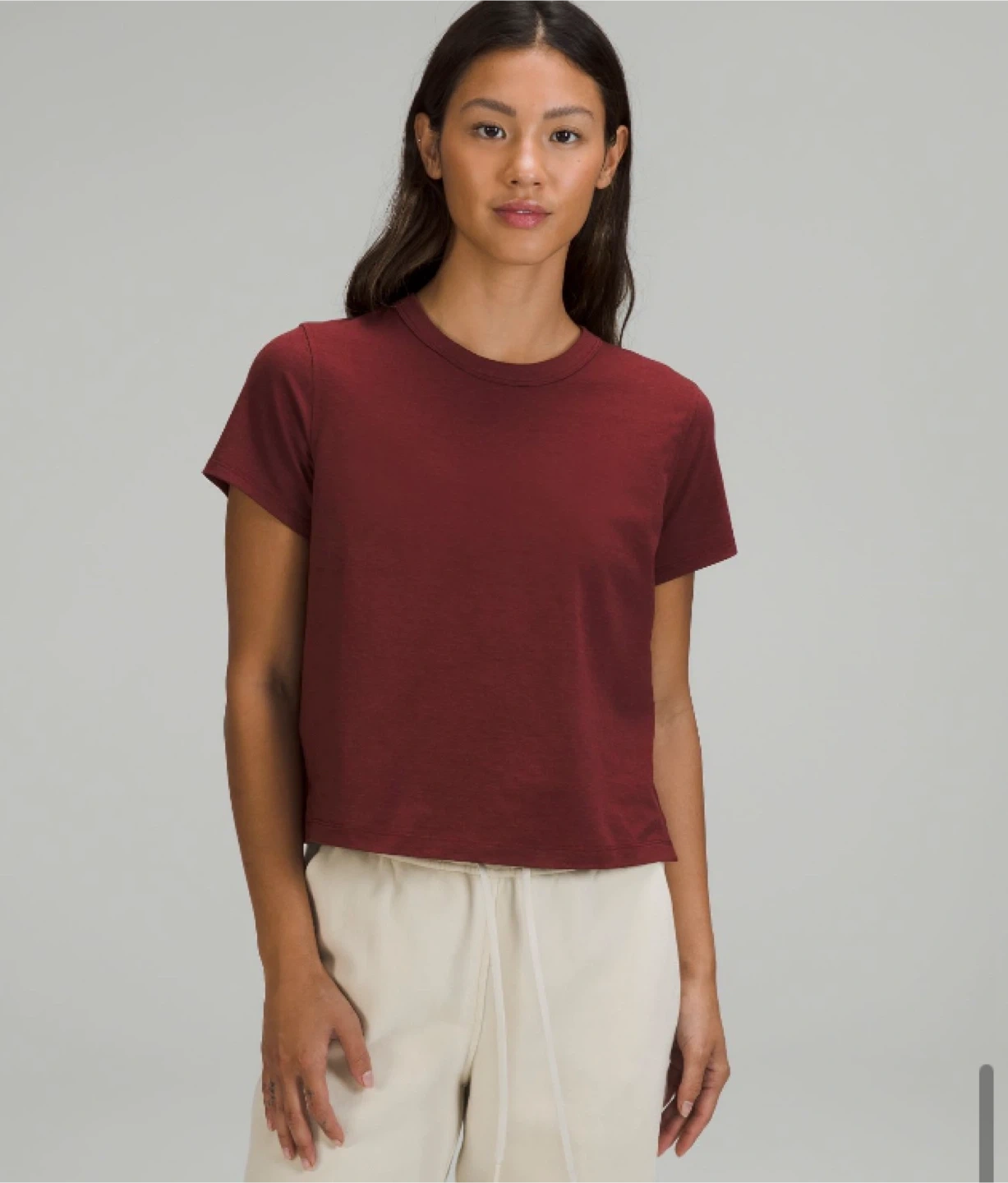 Show allLululemon Classic Fit Cotton Blend T-Shirt - Red Merlot Size 4
