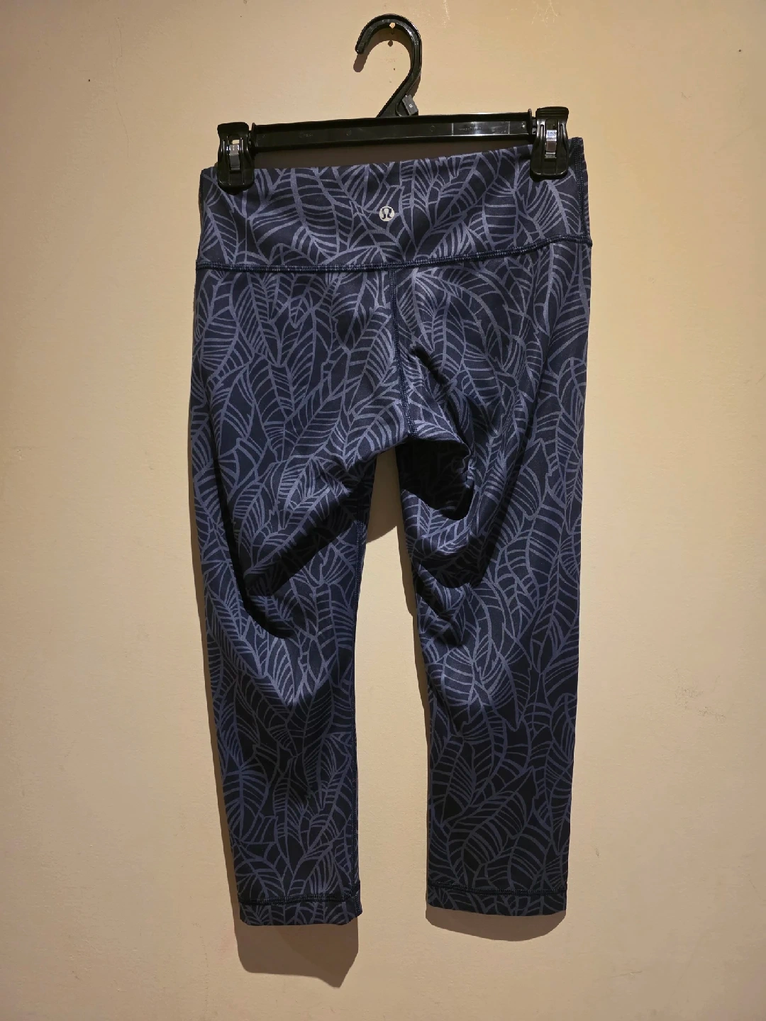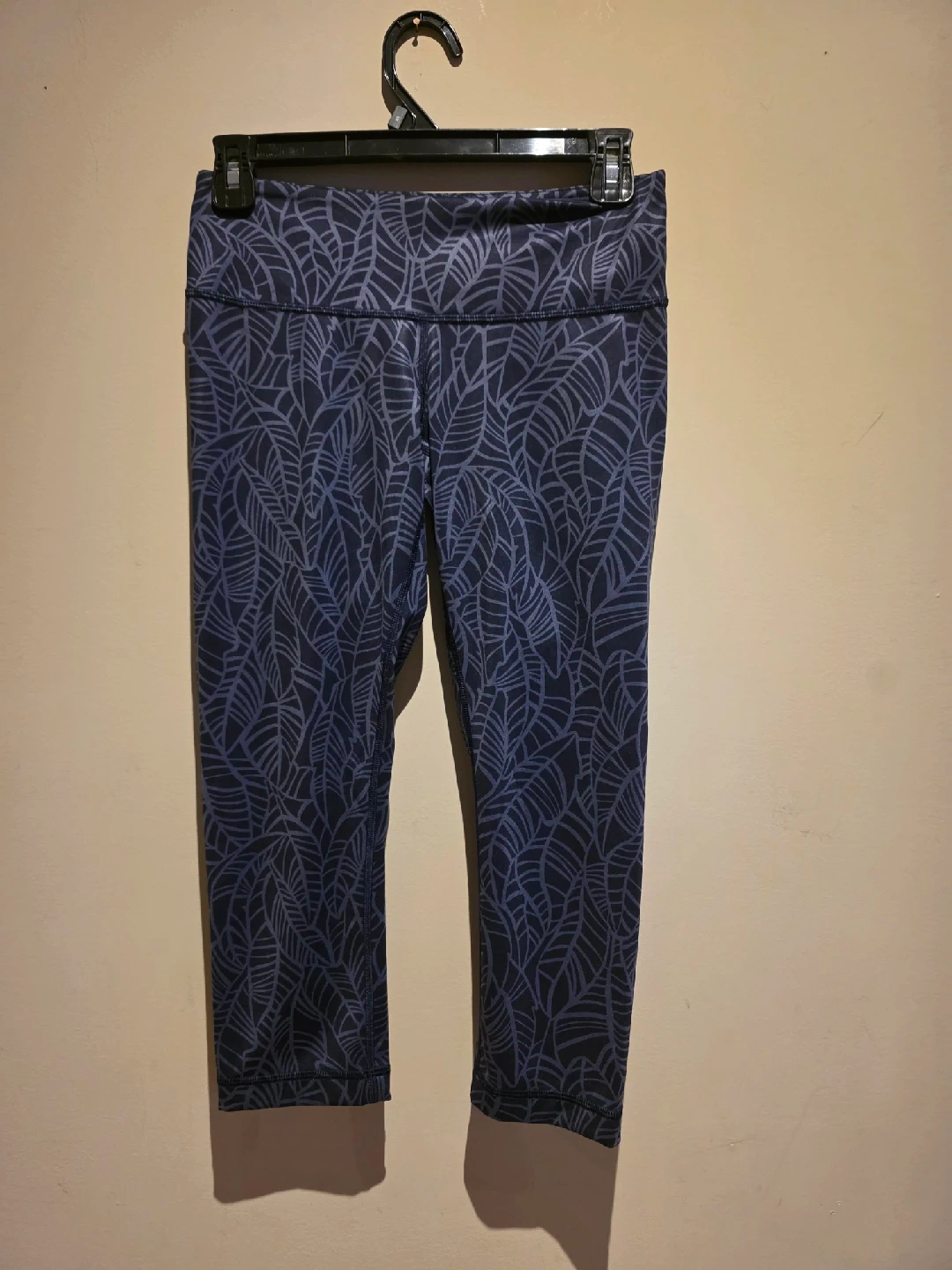 60Cute Lululemon crop leggings in a size 6! These leggings have a fun leaf pattern and are in great condition. Perfect for yoga, running, or just lounging around