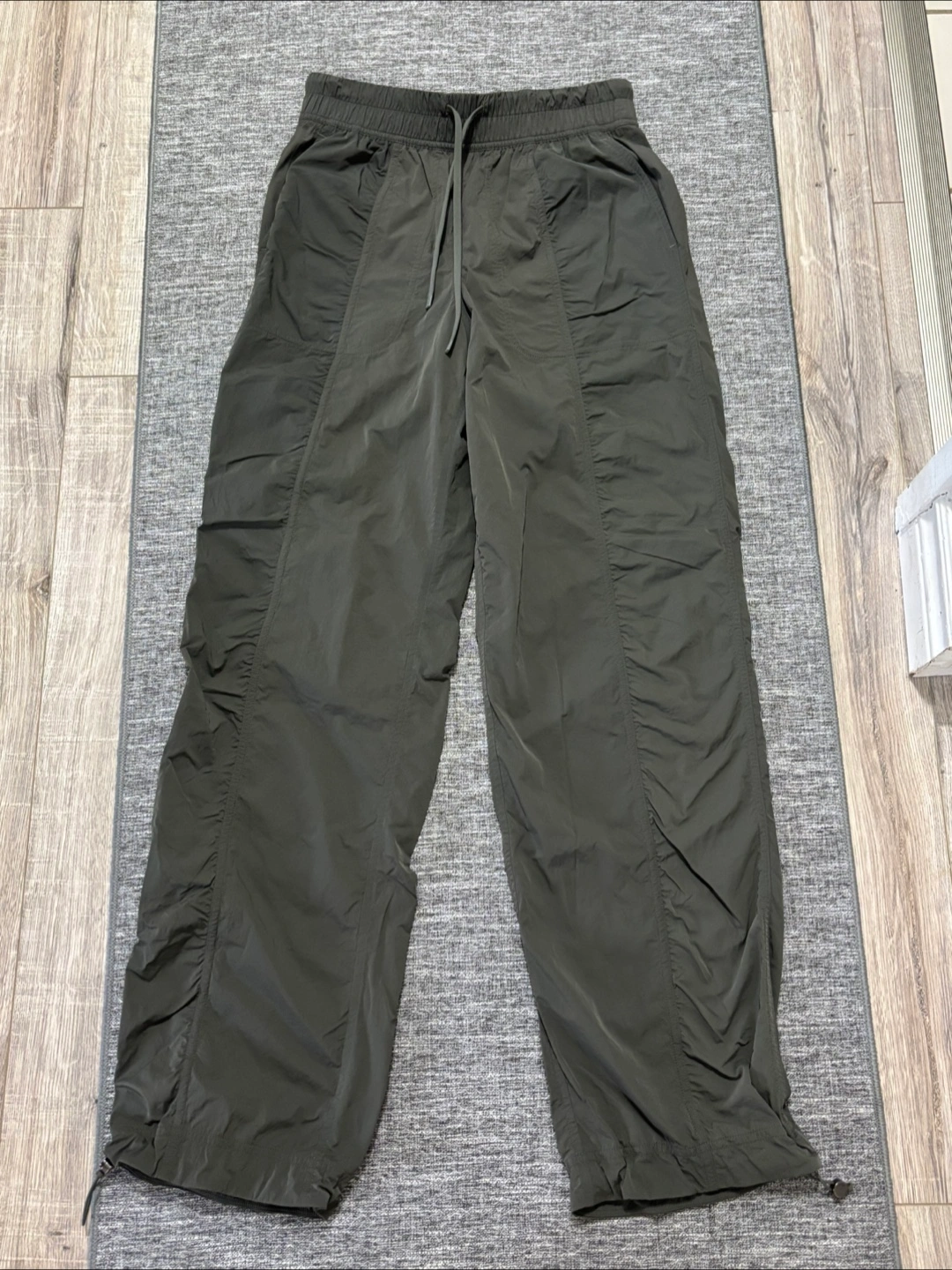 55I am selling a pair of Lululemon Dance Studio Pants (adjustable bottom) in a shade of Army green. I got it as a bday gift a year ago and never have worn it because it does not fit well with my quads.