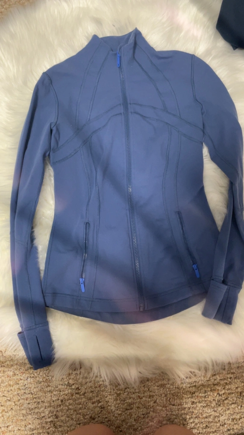 A great looking blue define jacket, with a full-length zipper, thumb holes, and zipper pockets. This jacket is perfect to wear on a mindful walk or for a run