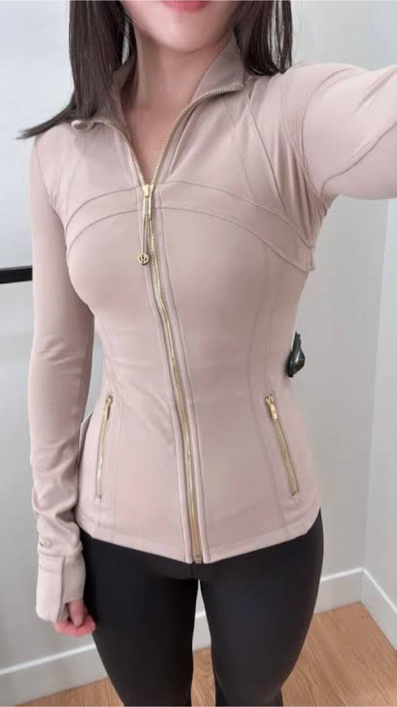 10Selling a Lululemon Define Jacket in a lovely beige colour! It's a size 2 and brand new, tag is still attached. Perfect for layering or wearing on its own for a light workout or casual outing. The jacket features a flattering fit and is made with comfortable, high-quality material.