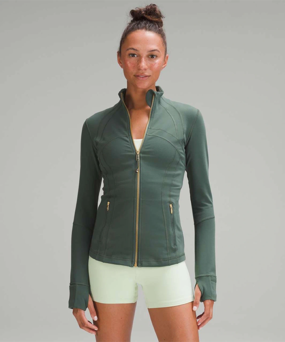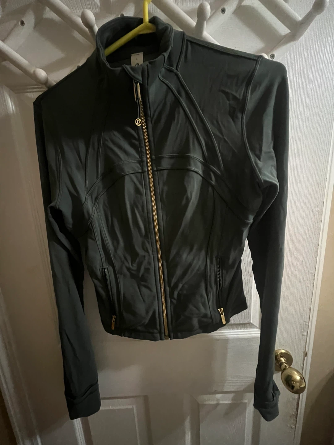 Selling a Lululemon Define Jacket in a lovely dark olive colour! It's a size 6 and in great condition. Perfect for layering or wearing on its own for a light workout or casual outing. The fitted design is super flattering!