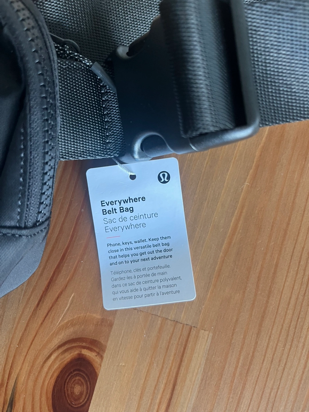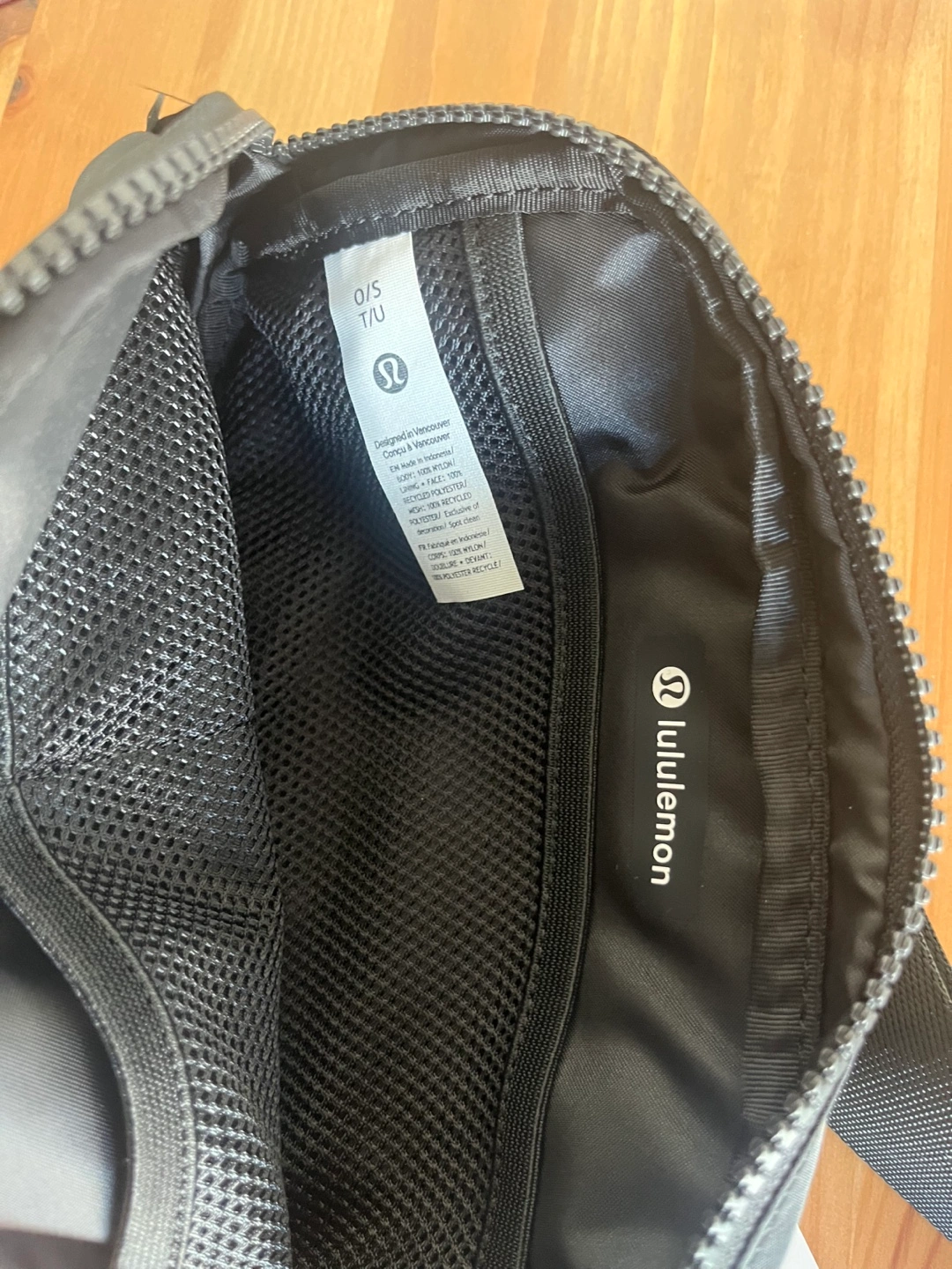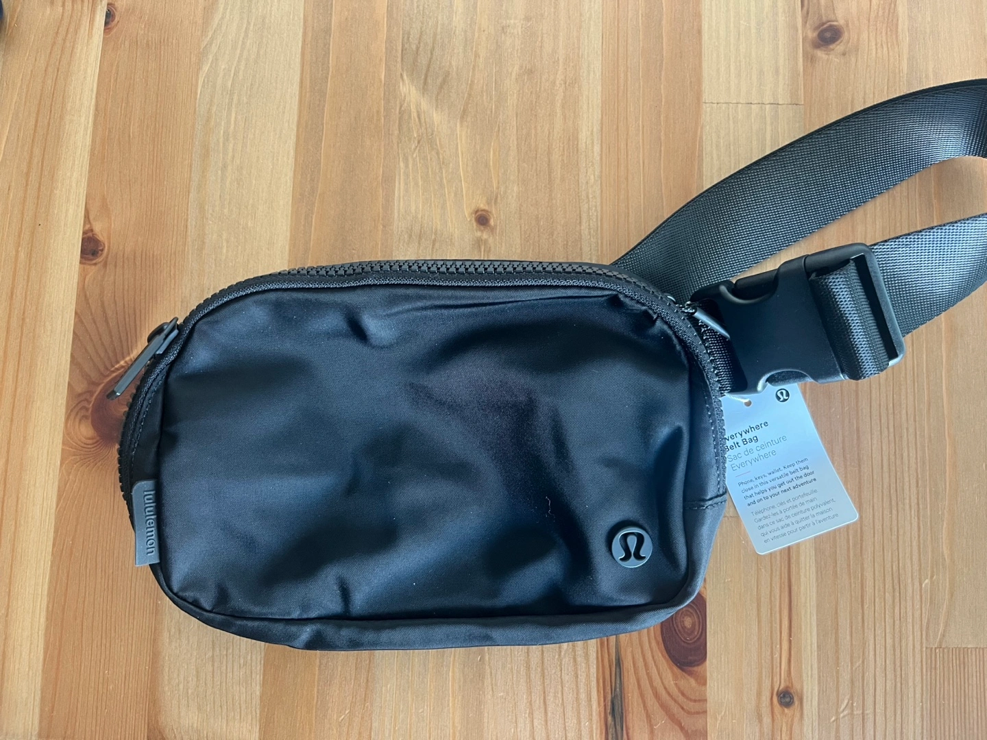 96Black Lululemon Everywhere Belt Bag. Water-repellent fabric. Exterior zippered pocket. Interior pockets. Adjustable belt. 1L volume. Bought for 45 dollars Never used