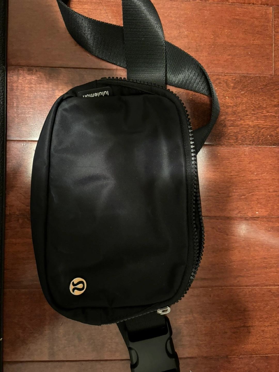 Lululemon black fanny pack with adjustable strap, and zipper closure. Cash only.