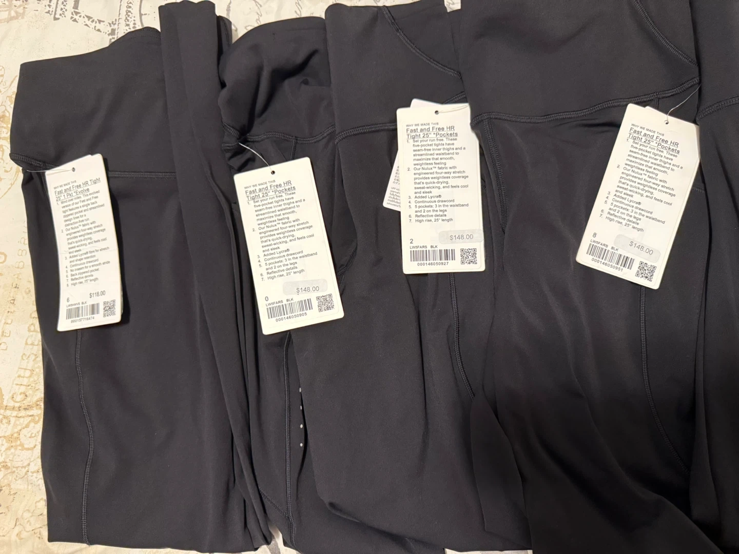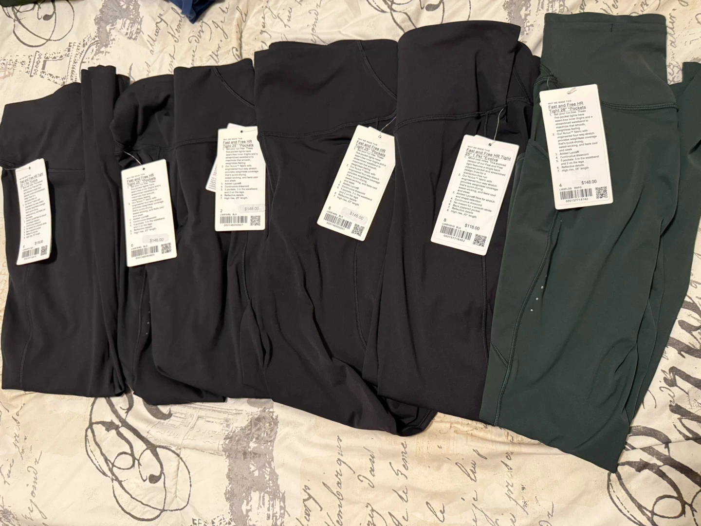 Selling Lululemon Fast and Free High-Rise Tight 25" leggings. They're designed for running and training. Available in various sizes and colours. - Continuous drawcord - Streamlined fit skims your body - High rise, 25" length Originally bought for $148.00!