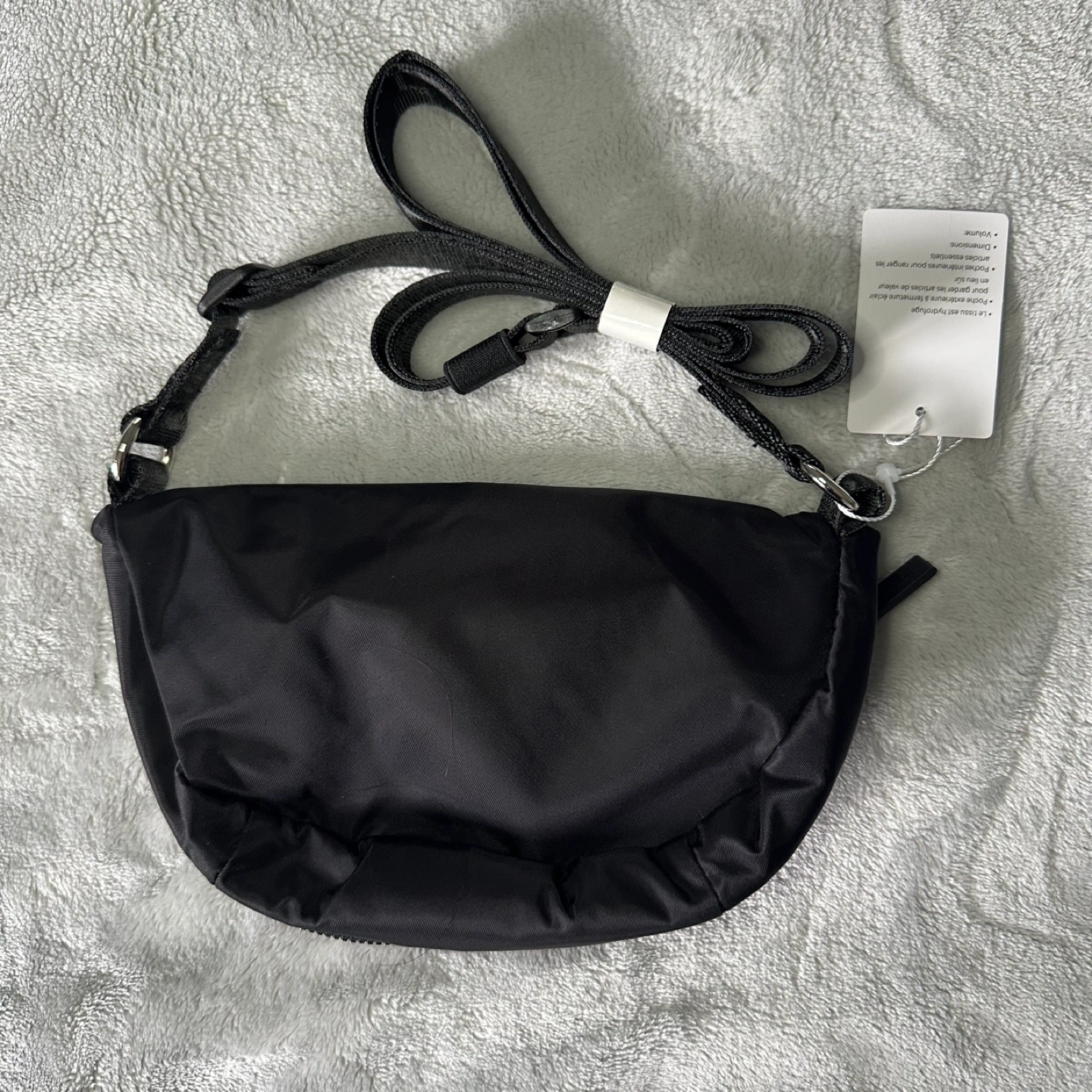 12Black crossbody bag. Features a zipper. Detachable strap. Could hold your essentials. Perfect for a relaxed walk. Can meet up richmond area.