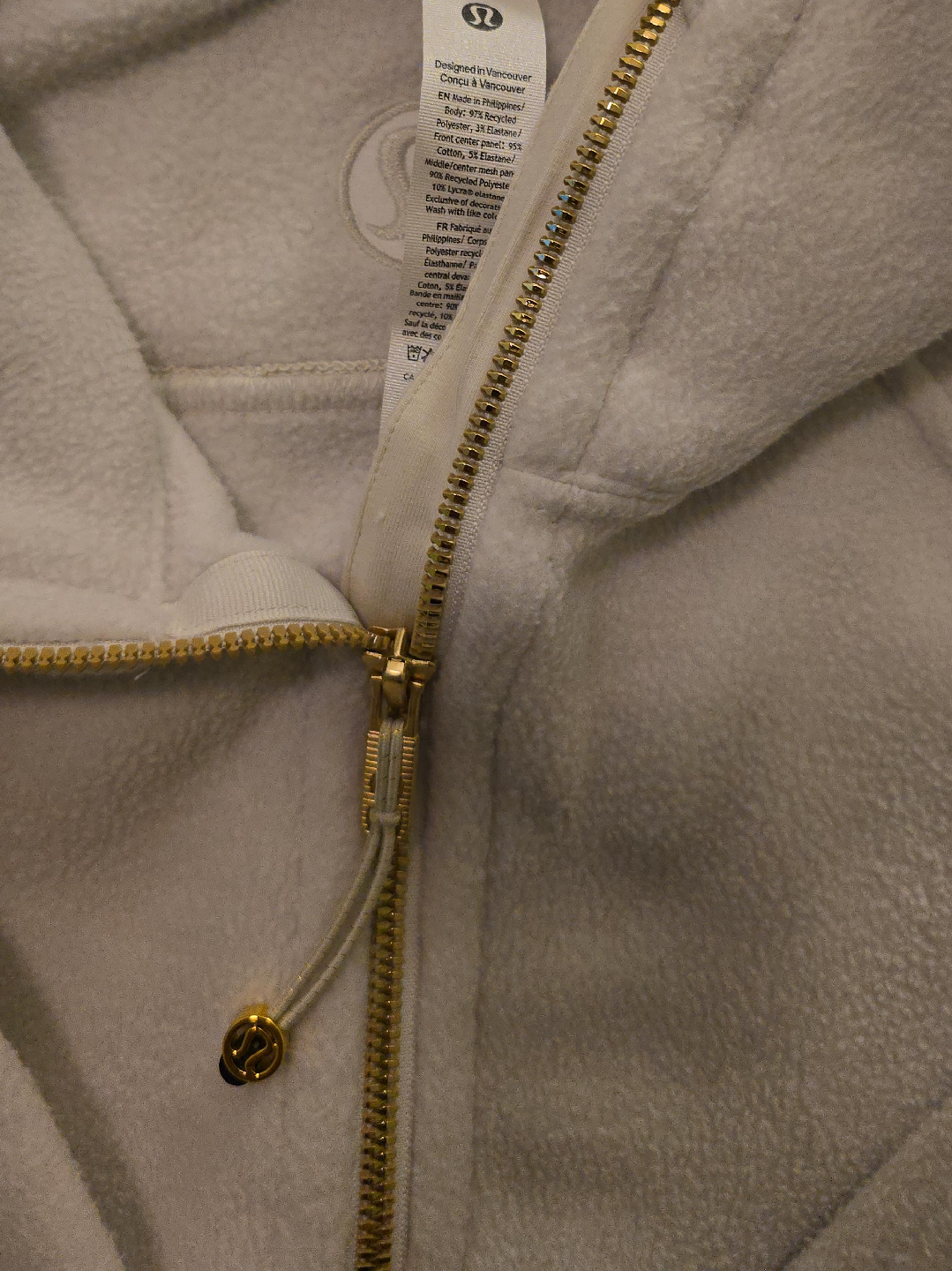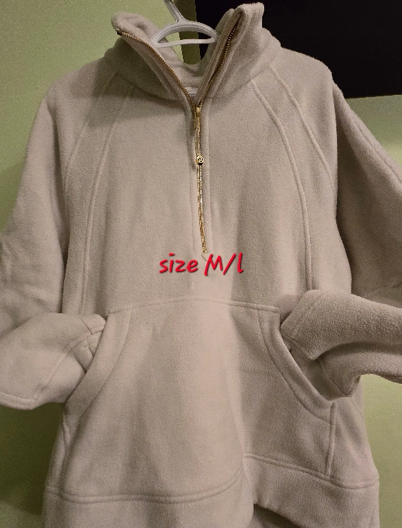 Cozy up with this Lululemon fleece half zip! It's a size M/L and made with 95% recycled polyester body, making it super soft and warm. The front center panel is also 95% recycled polyester. Perfect for chilly days or lounging around the house