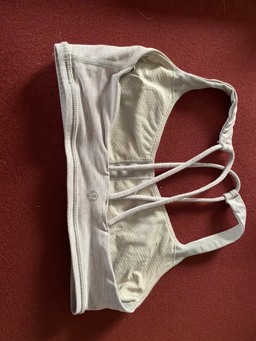 26Selling a Lululemon Free to Be Serene Bra in size 6. It's in great condition and ready for a new home! The light grey color is super versatile, and the strappy back adds a nice touch