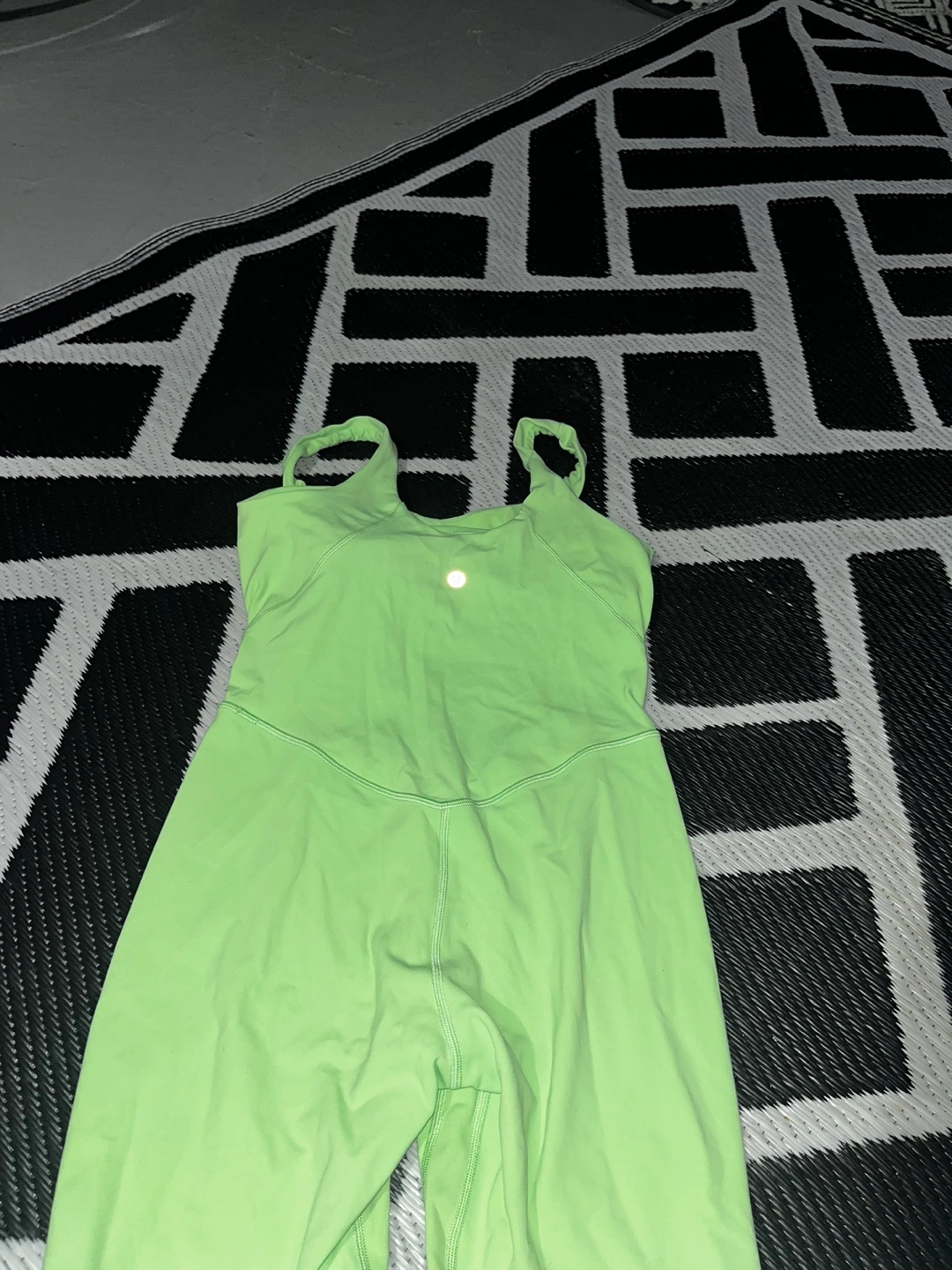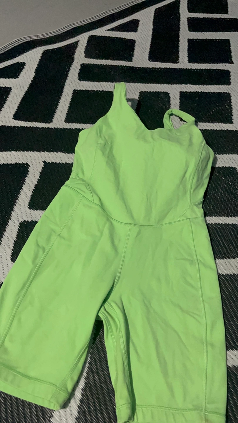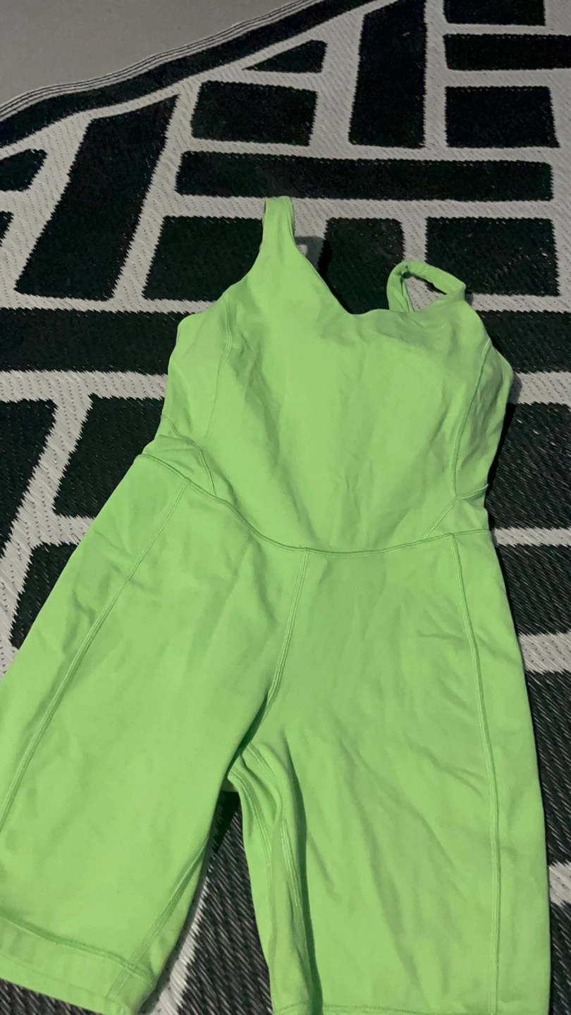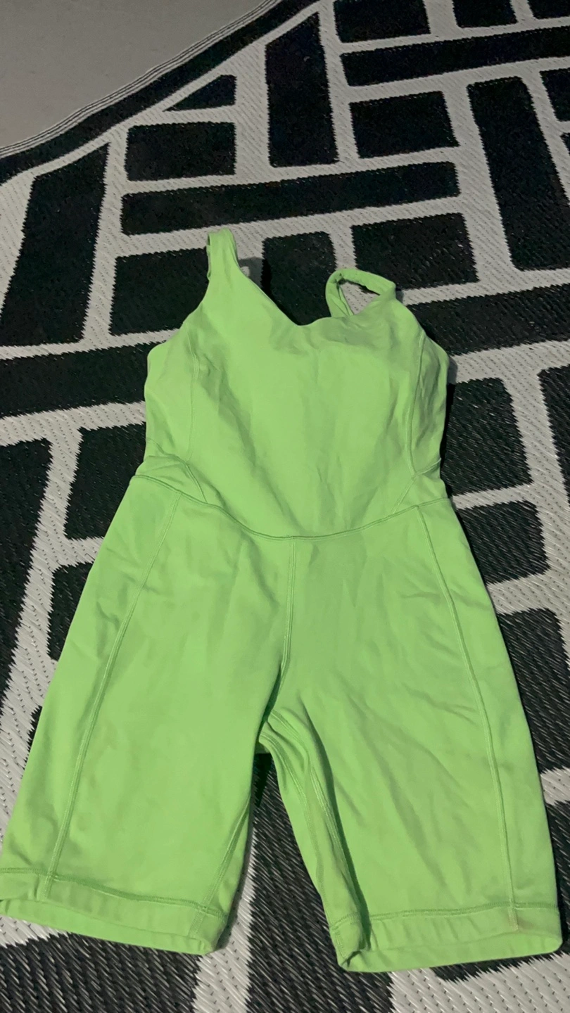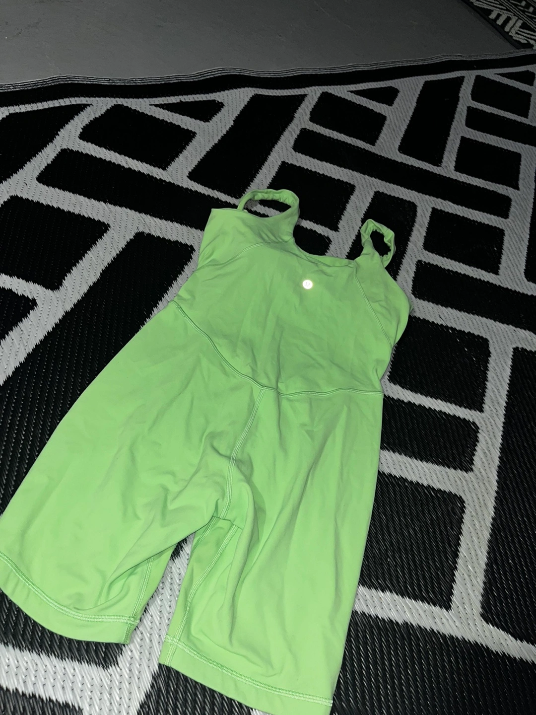 Lululemon one-piece in green. It has a racerback style and built-in shorts. Worn once want gone asap please smoke free pet free home pick up only it doesn’t fit