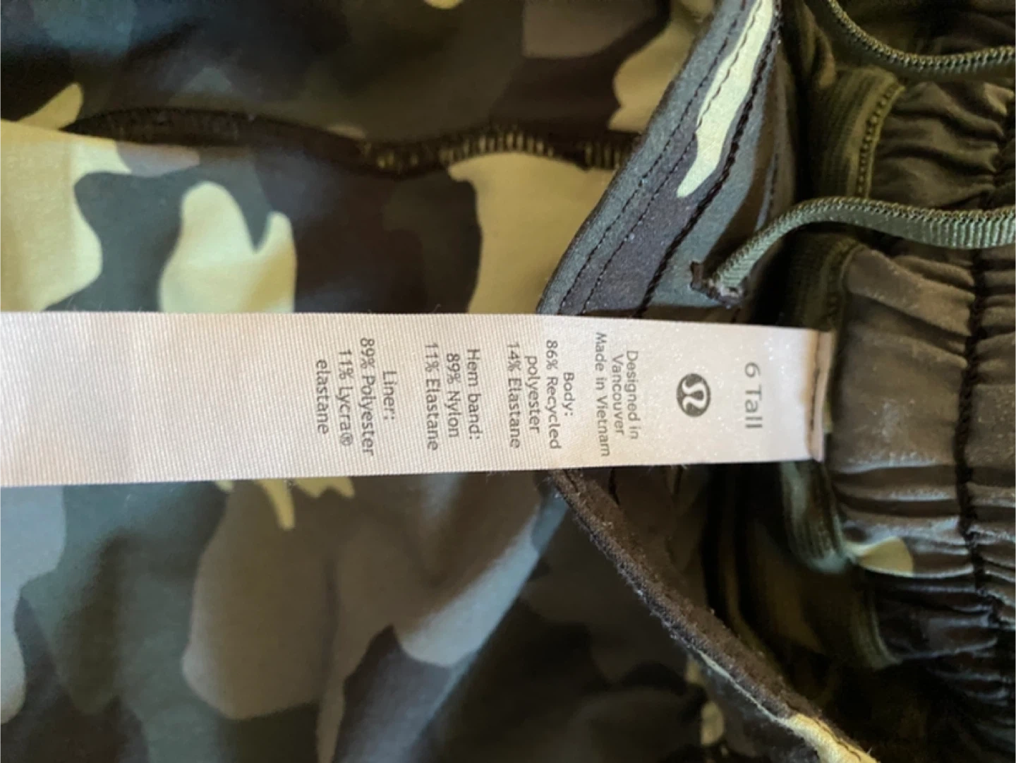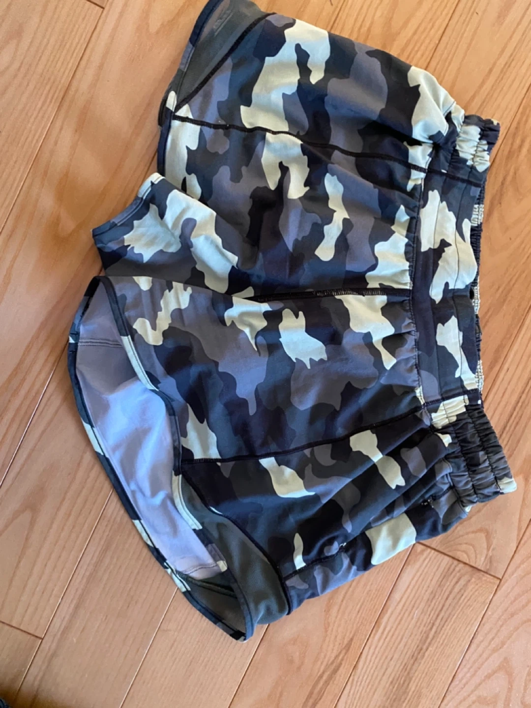 65Selling Lululemon Hotty Hot Low-Rise 4” short, Size 6 Tall. They come in the gorgeous colour Heritage 365 Camo Crispin Green Olive! Perfect for running or just lounging around