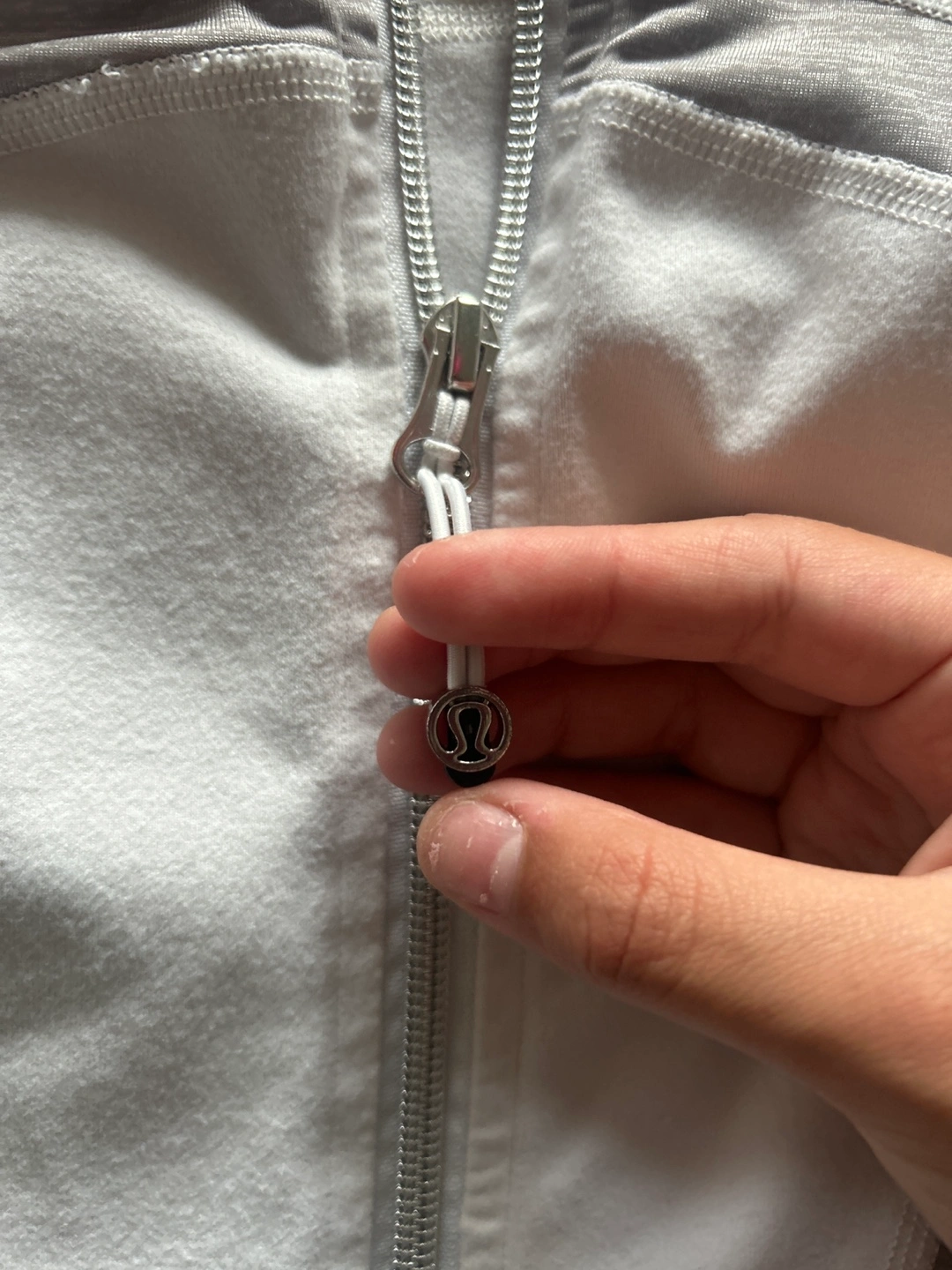 Selling a Lululemon jacket in great condition! It's a size 6 and perfect for workouts or everyday wear. The jacket features a full zipper and thumb holes for added comfort and convenience. Feel free to message me with any questions!