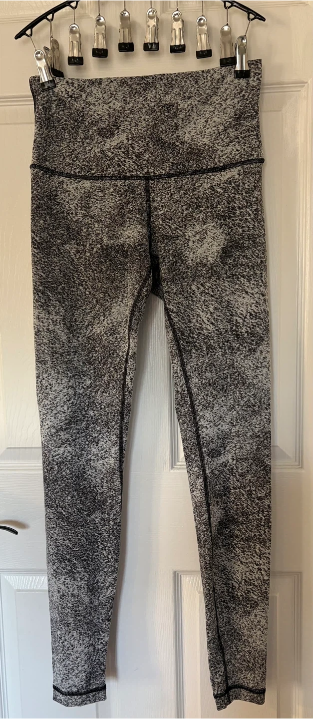60Selling a pair of Lululemon leggings in a black and white pattern. They're in great condition and ready for a new home! Perfect for workouts or just lounging around the house **smoke free Cat friendly house**