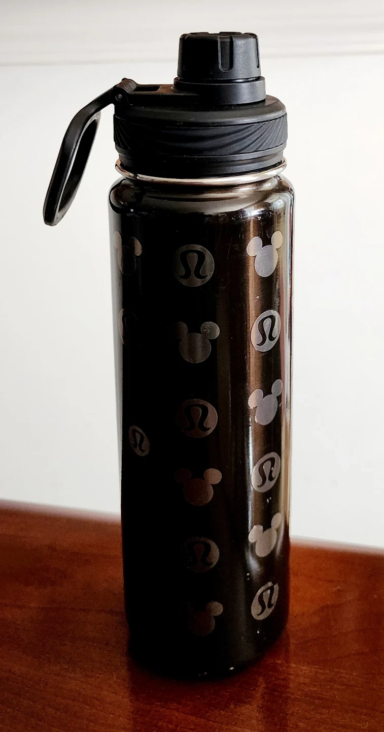 37Selling a black Lululemon water bottle! It features both the Lululemon logo and Mickey Mouse heads. Perfect for staying hydrated on the go!