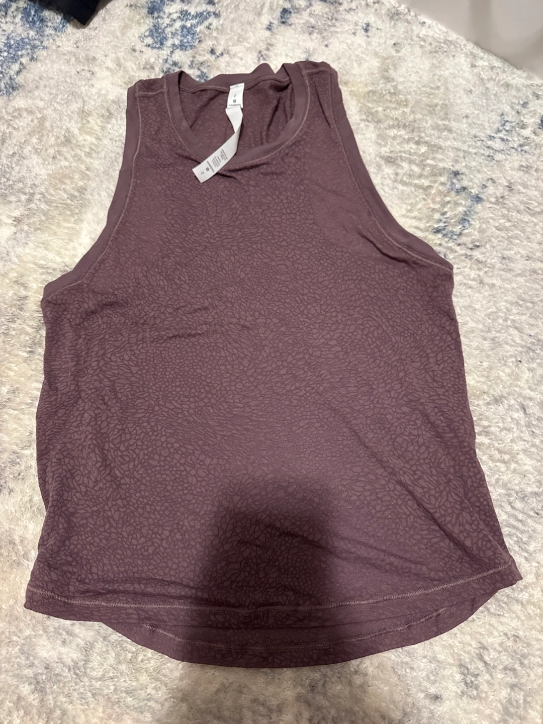 123Women's sleeveless shirt. Dark purple colour. Textured fabric. Round neckline.