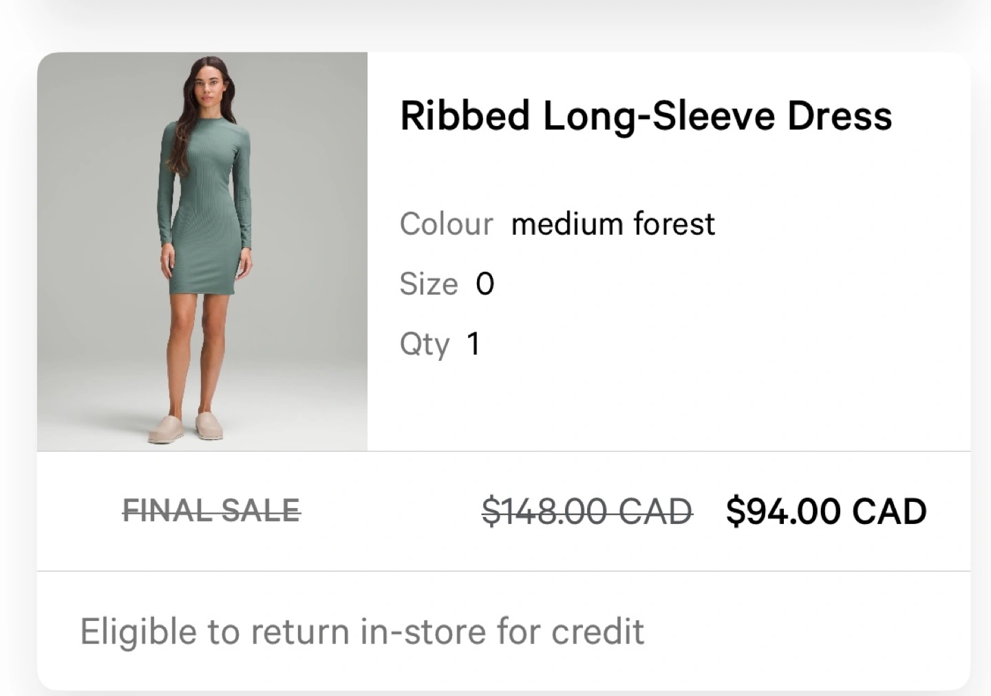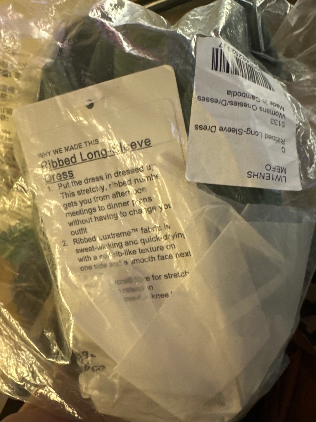 Lululemon Ribbed Long-Sleeve Dress Size 0 Medium Forest