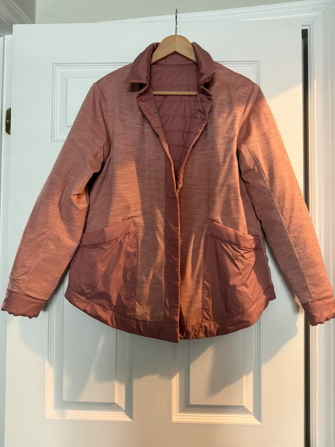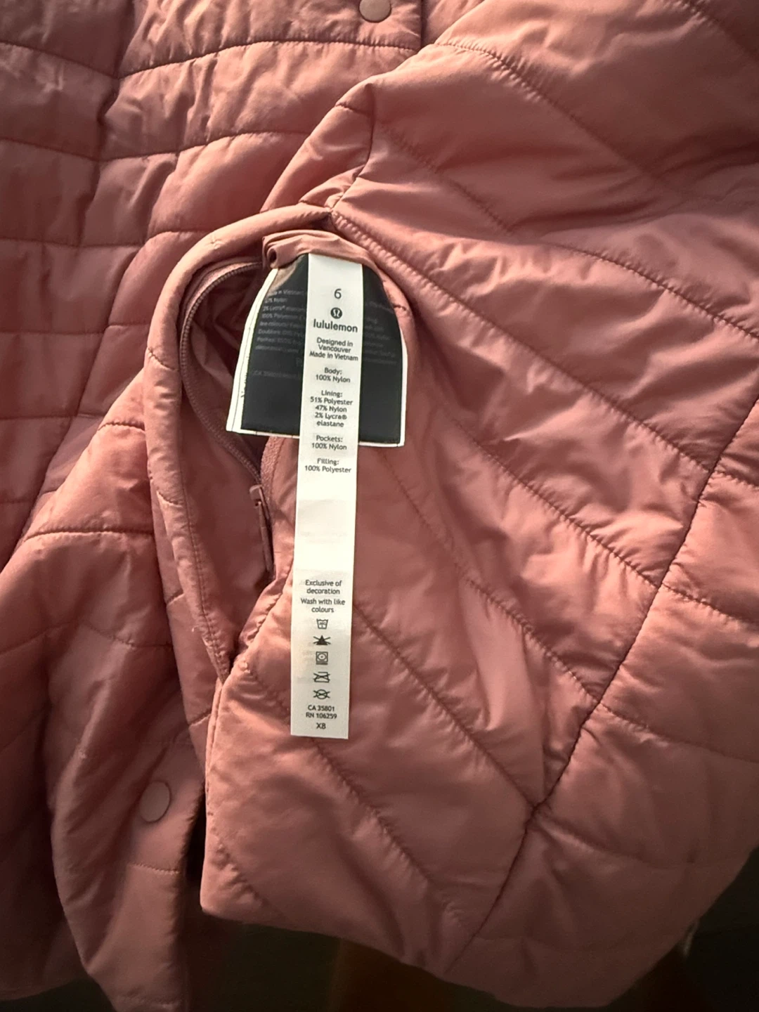 Selling a Lululemon reversible puffer jacket in a beautiful rose colour. It's a size 6 and in great condition. Perfect for layering or wearing on its own during those milder days!