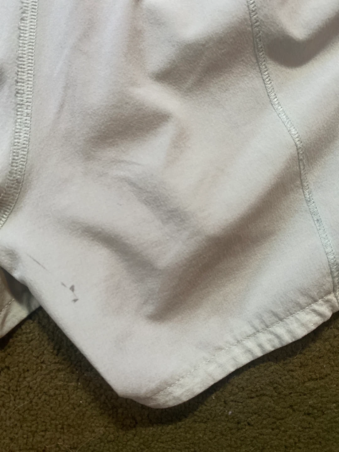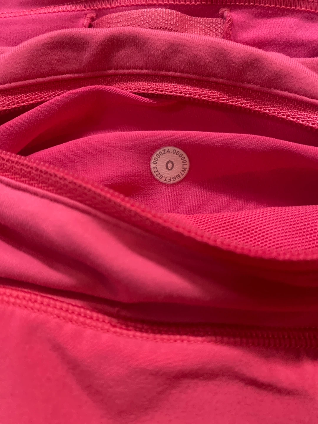 Two pairs of Lululemon running shorts, both size 0! One is a mint green colour, and the other is a bright pink. Both pairs have a few marks as shown in pictures, but otherwise both are in good condition