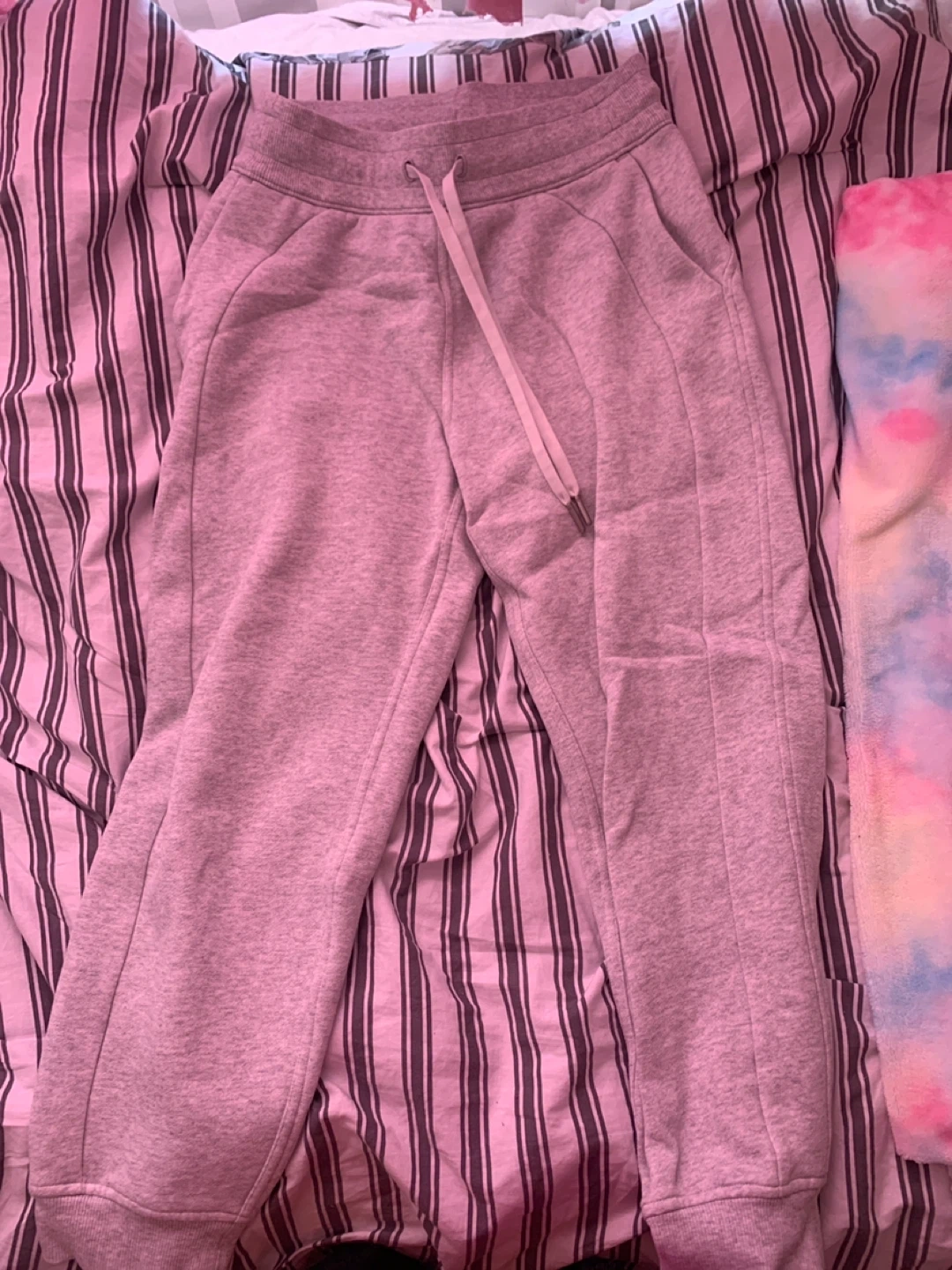 Selling a pair of comfy grey sweatpants! They're in great condition and perfect for lounging around or running errands.