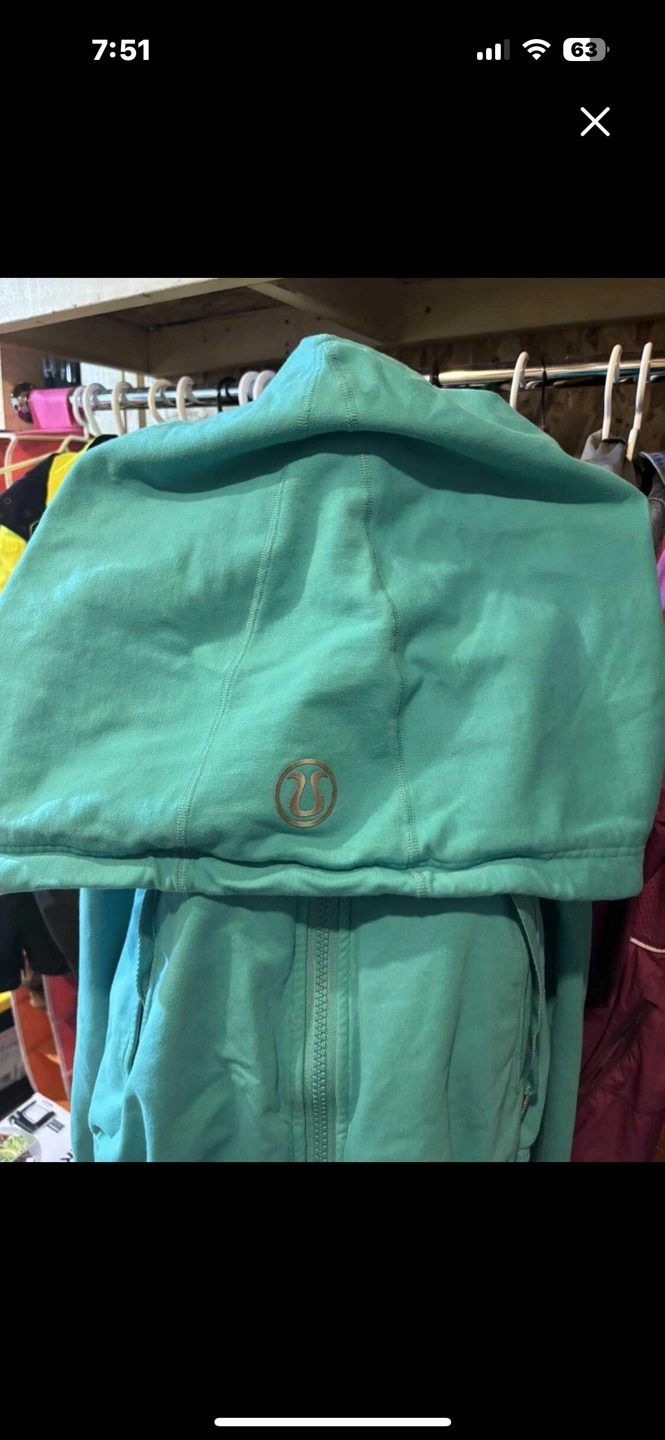 Women's Lululemon scuba hoodie. Size 8. Teal colour. Full zip. Thumbholes. Mesh back detail. Excellent condition.