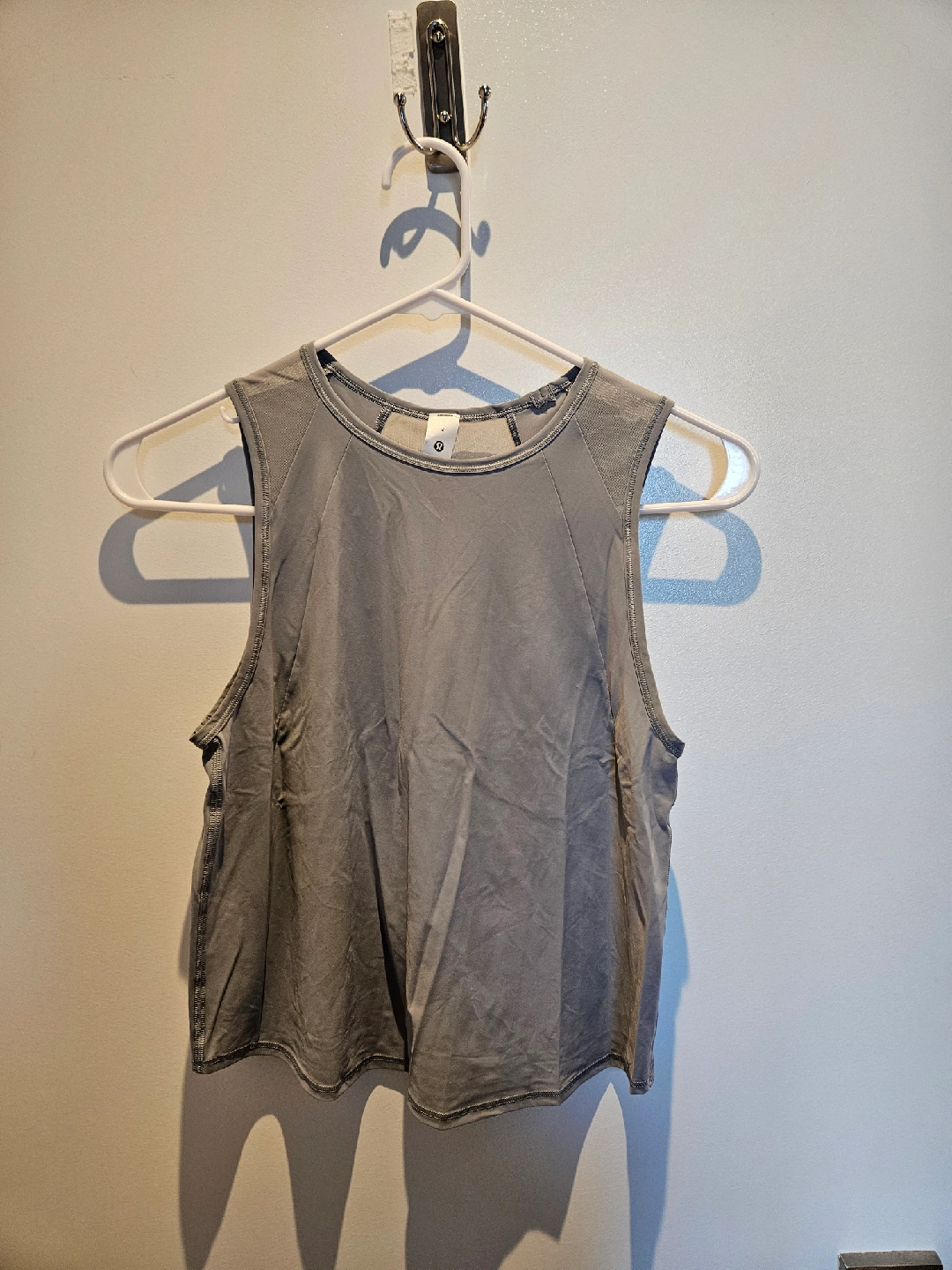 Selling an iron grey Lululemon tank top in great condition. It's a stylish and comfortable option for workouts or casual wear. Size 2, worn once Feel free to message me with any questions!