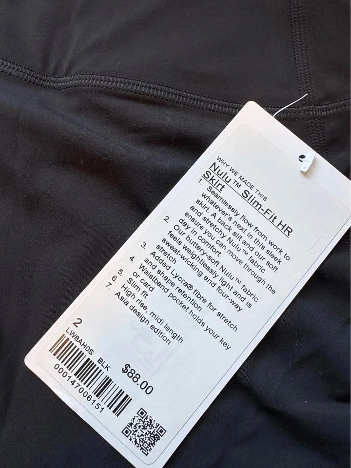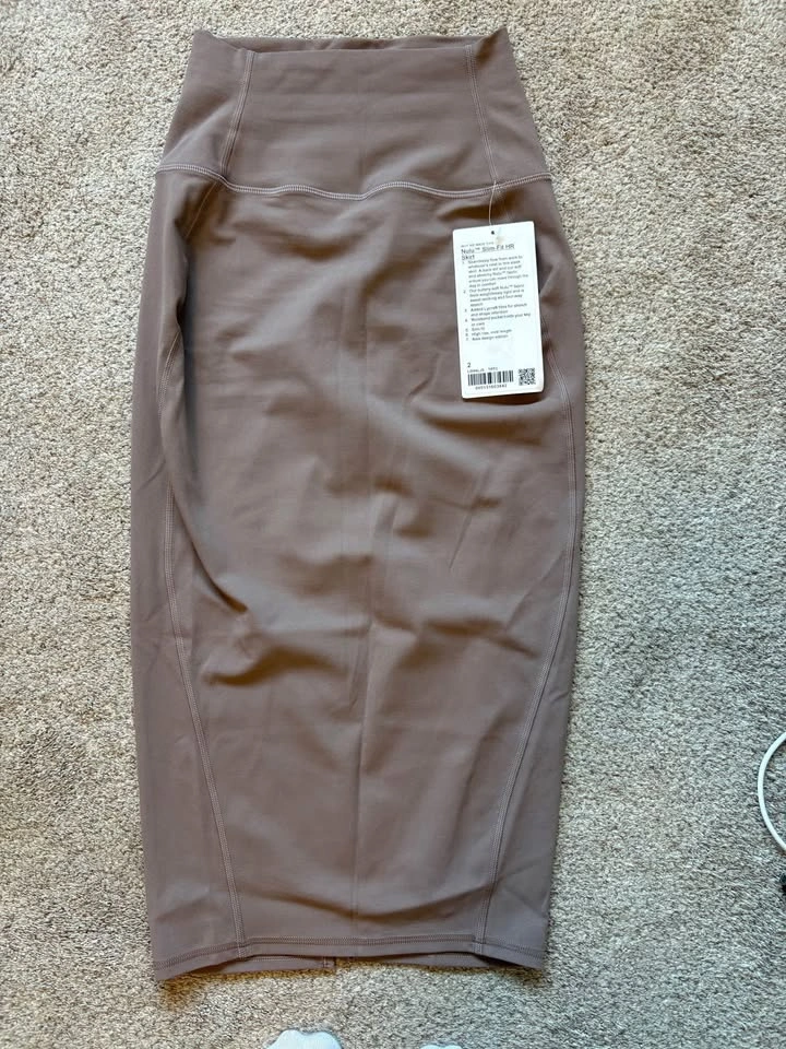 I have three Lululemon items, all size 2 and brand new, some with tags. I have two Nulu Slim-fit HR skirts. Both still have tags and have only been tried on. One is black, and one is beige-ish. I also have one pair of black 23" leggings (I’m pretty sure). They have a textured design. See picture. OBO. Located in Fort Saskatchewan.