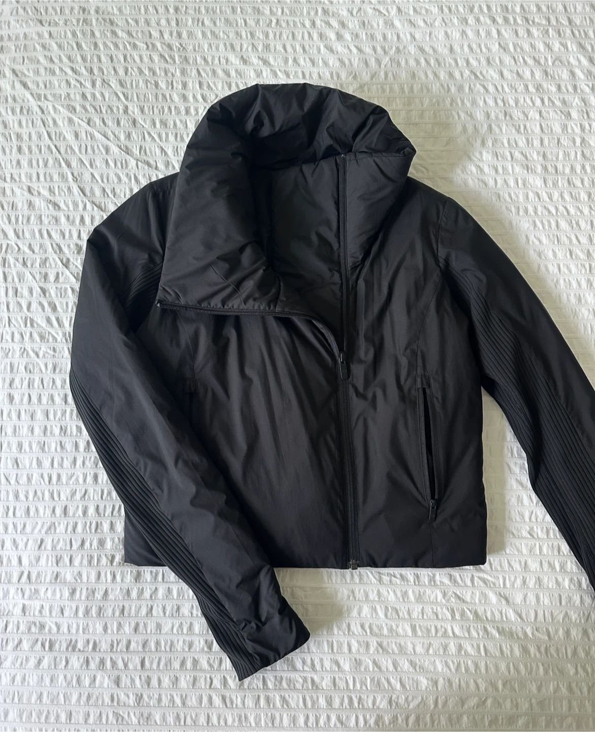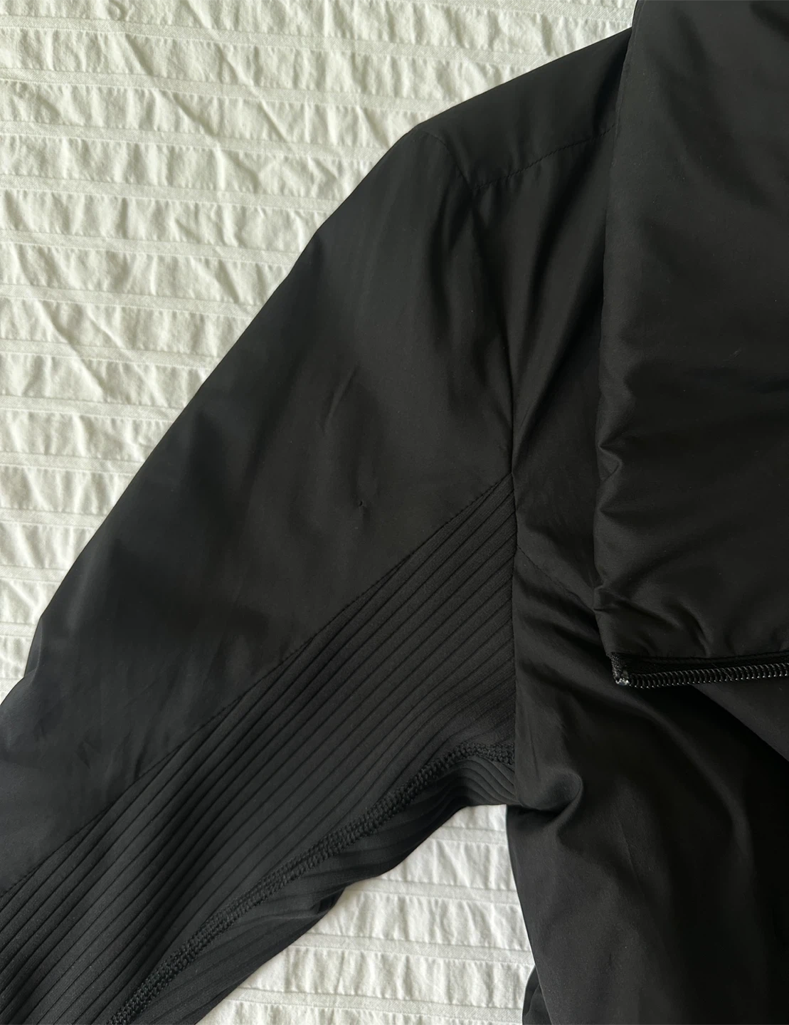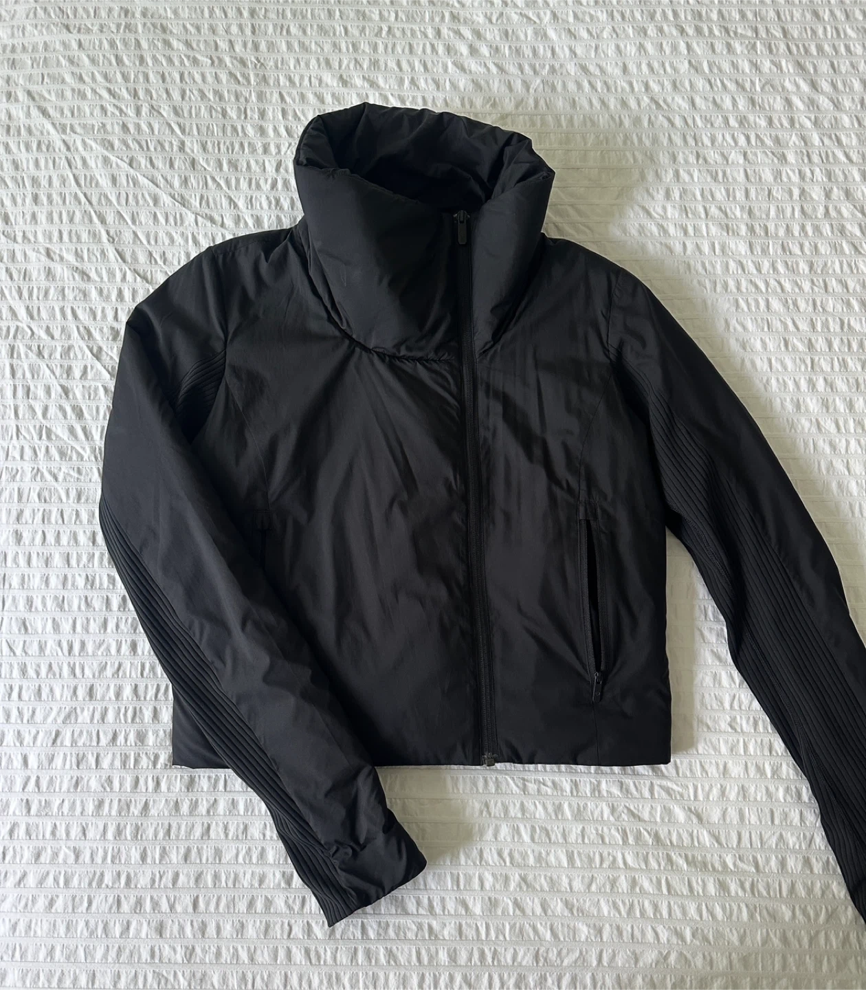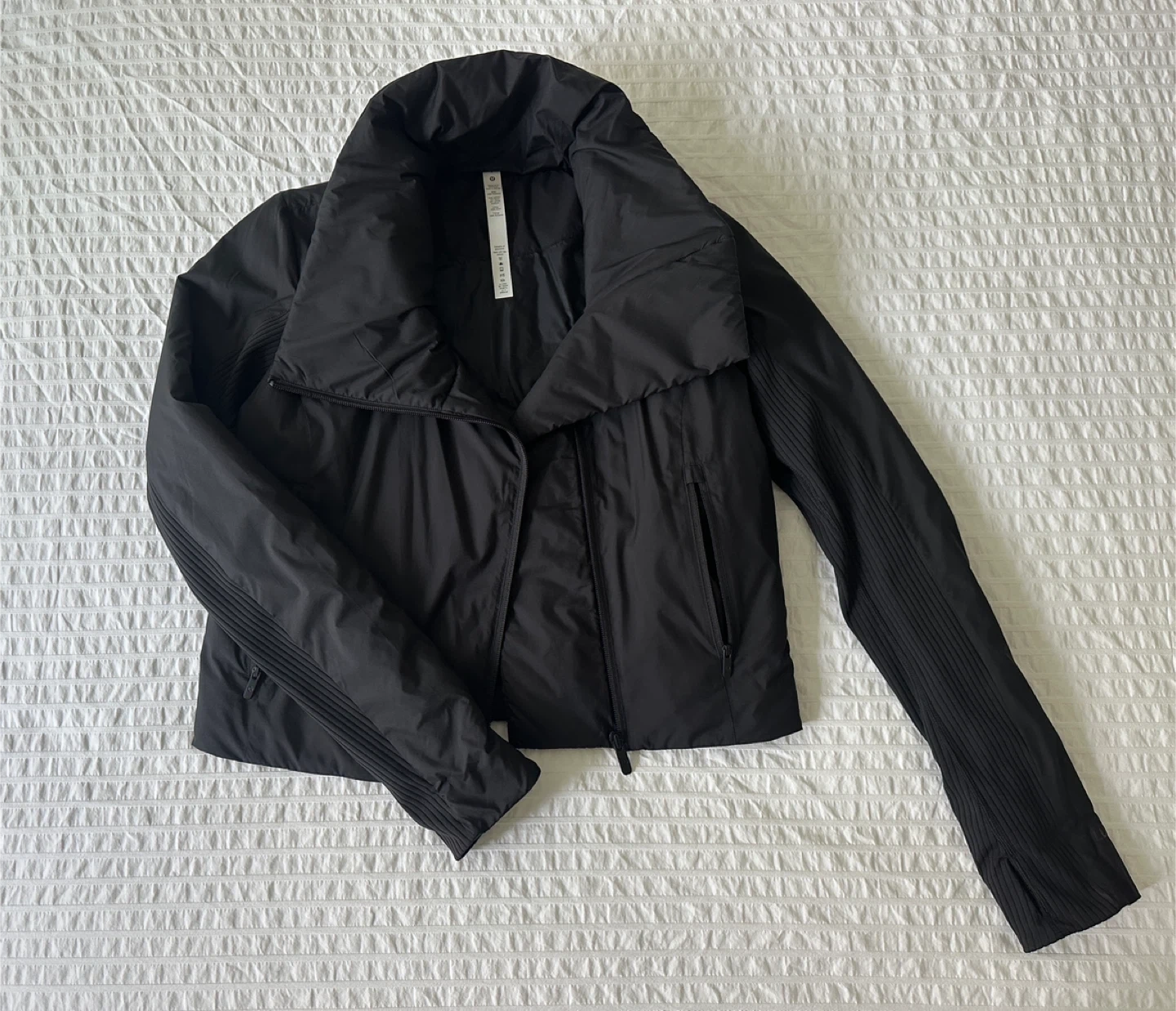 A slim, thin padded jacket. (Black) Warm and stylish. Worn twice, very good condition. (As shown, there is a very tiny hole on the arm, but it is barely visible.) Pick up West end Smoke free, pet free home