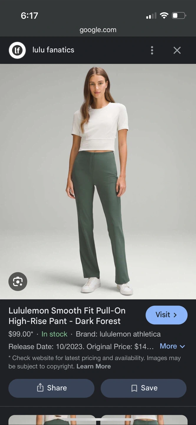 20Selling a pair of Lululemon Smooth-Fit Pull-On High-Rise Pants in size 8! THE MOST FLATTERING PANTS EVER!! Feels like I am wearing leggings at work. Selling for a friend (I own 2 and love them). These pants feature Smooth-Fit Waistband technology that keeps the tummy looking flat. They also have zippered hand pockets and a slim fit with a subtle flared leg, with a 32" length Also selling BNWT size 6 in black