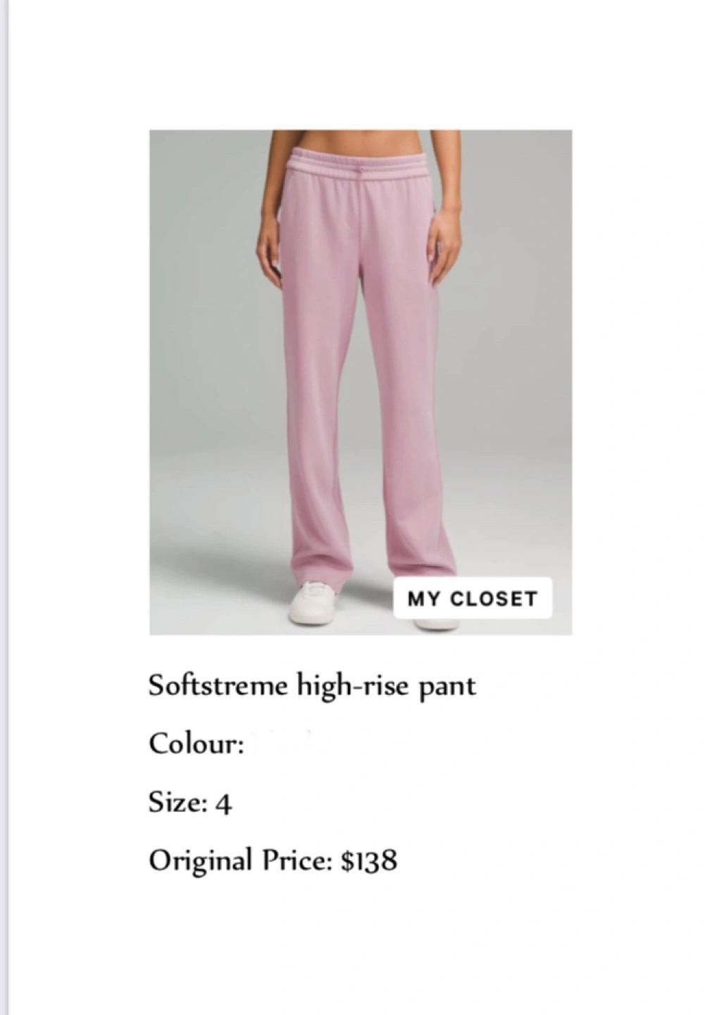 Lululemon Softstreme High-Rise Pant. Size 4. Dusty Rose colour. Excellent condition. Comfortable and stylish.