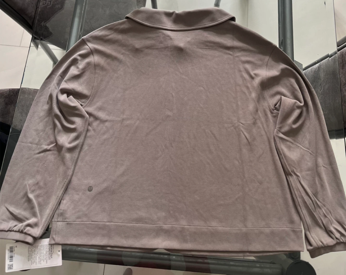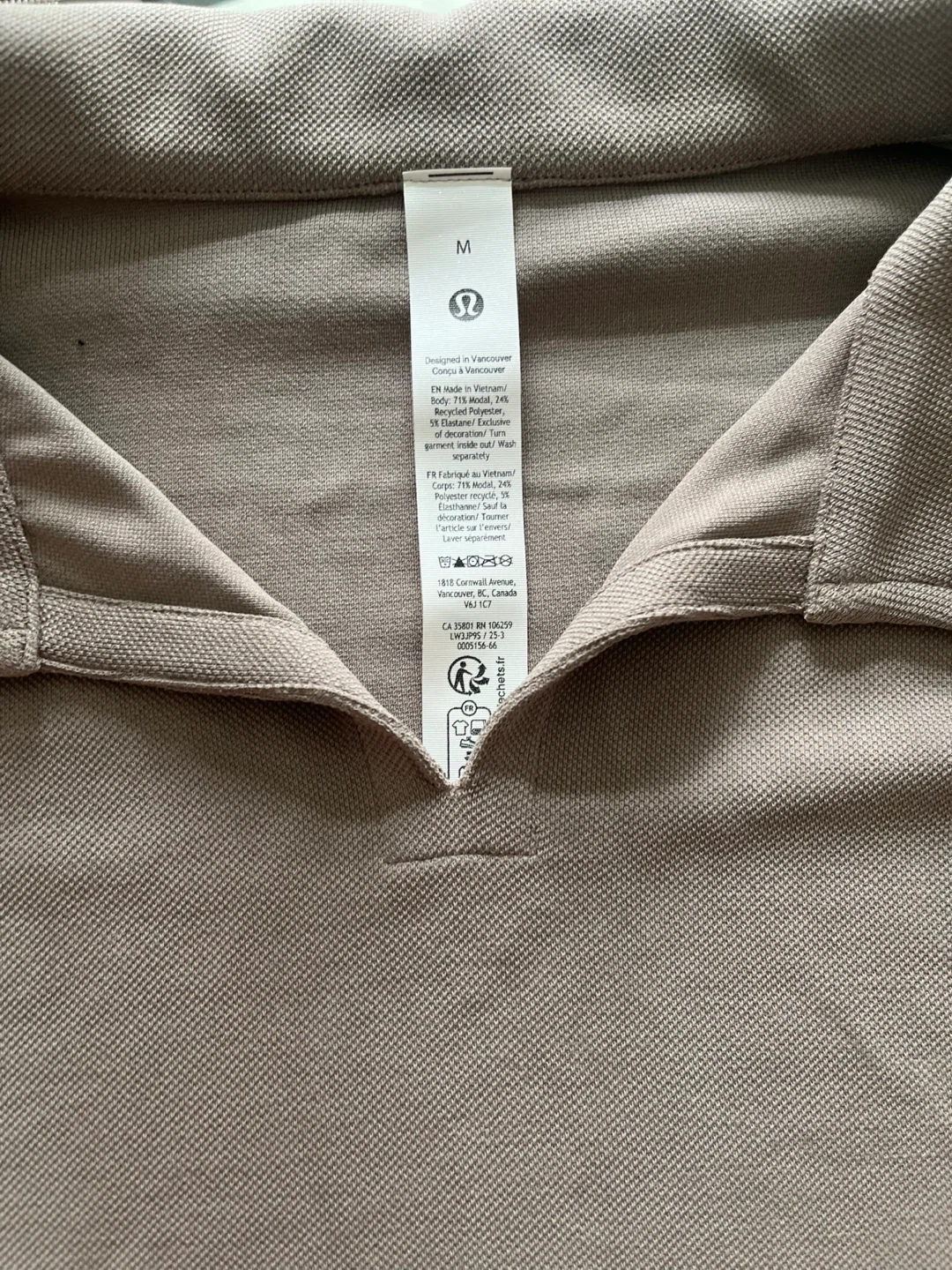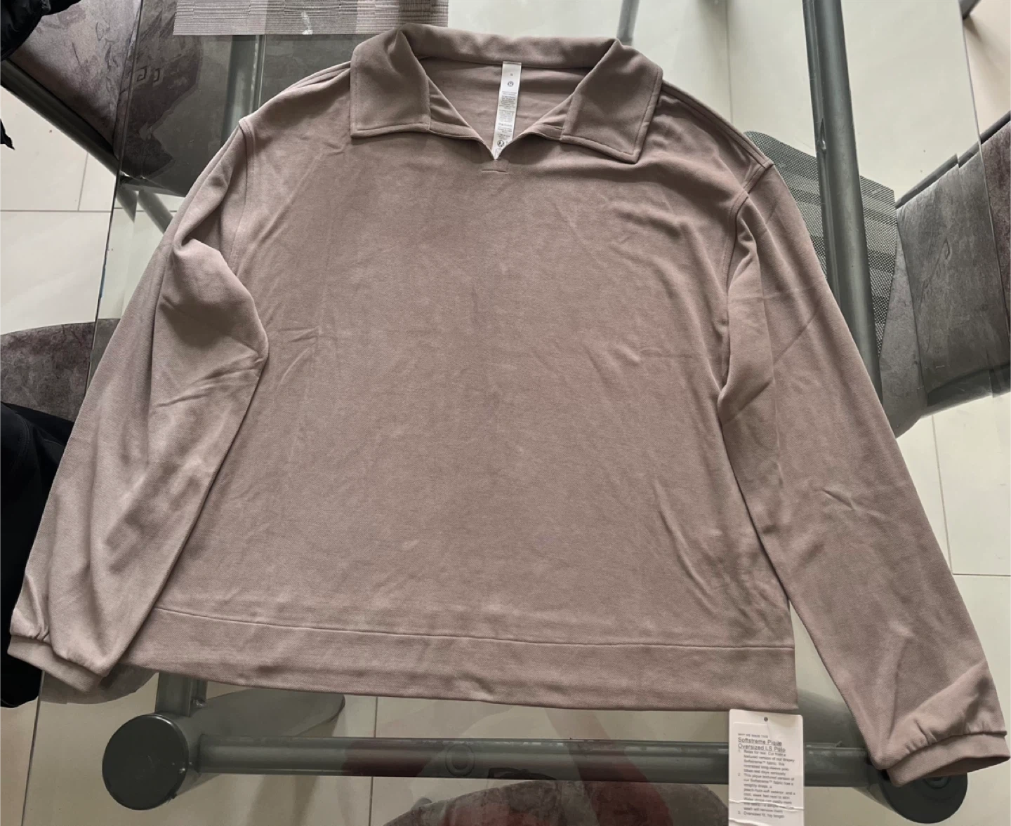 10Lululemon Softstreme Oversized Long Sleeve Polo in size M. Colour: Warm Ash Grey This polo is designed for a relaxed fit. It's made from a textured version of Lululemon's drape Softstreme fabric. The pique textured fabric has a weighty drape with a peach-fuzz soft exterior. It's cool and sleek next to the skin. Brand New Never Worn