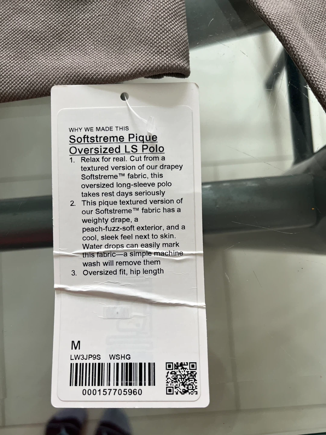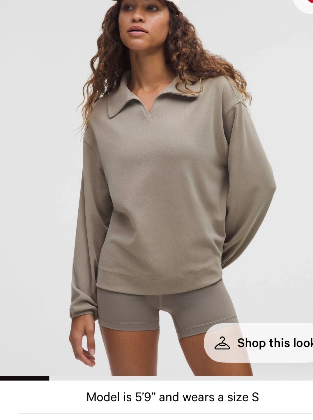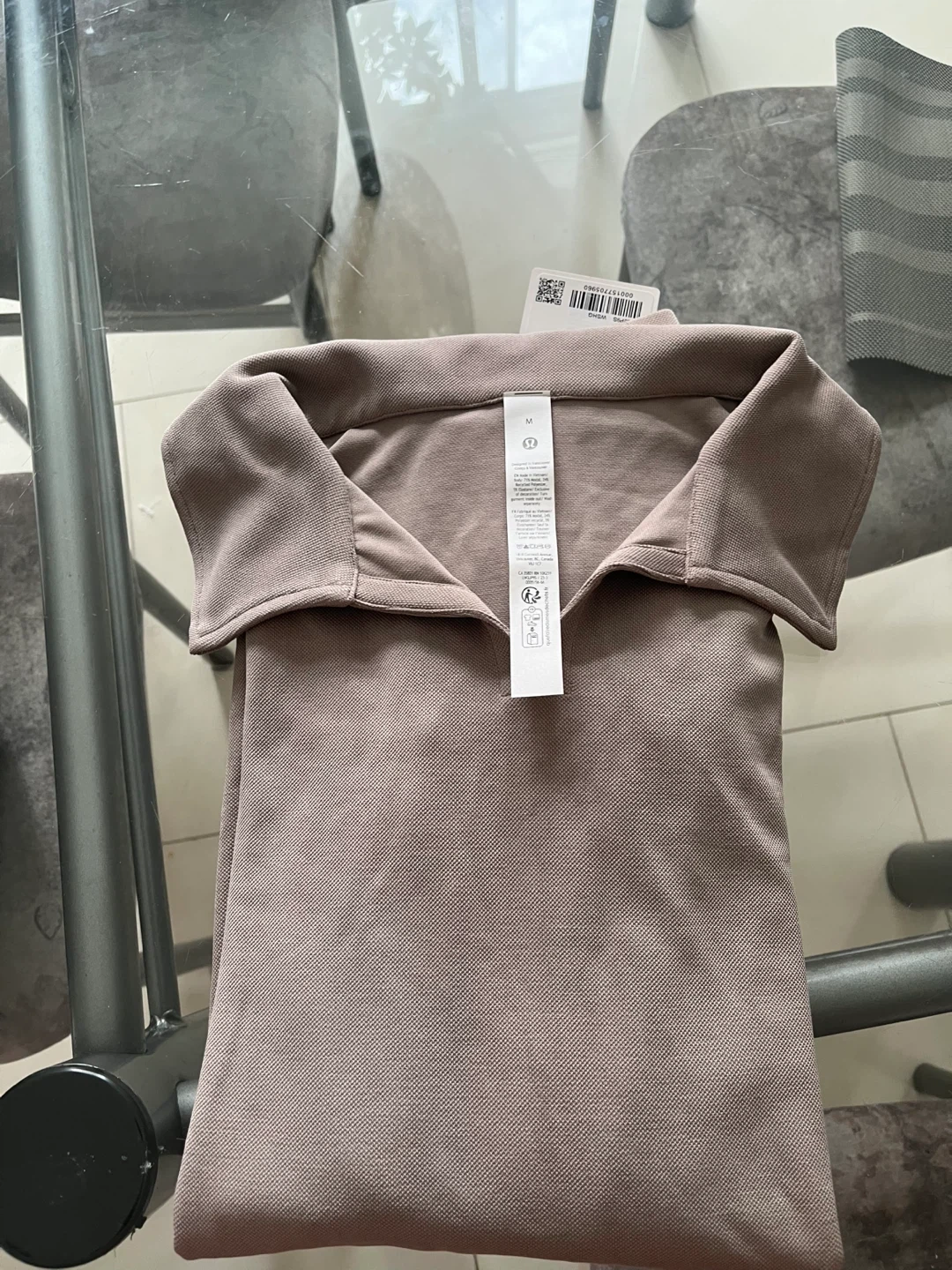 10Lululemon Softstreme Oversized Long Sleeve Polo in size M. Colour: Warm Ash Grey This polo is designed for a relaxed fit. It's made from a textured version of Lululemon's drape Softstreme fabric. The pique textured fabric has a weighty drape with a peach-fuzz soft exterior. It's cool and sleek next to the skin. Brand New Never Worn