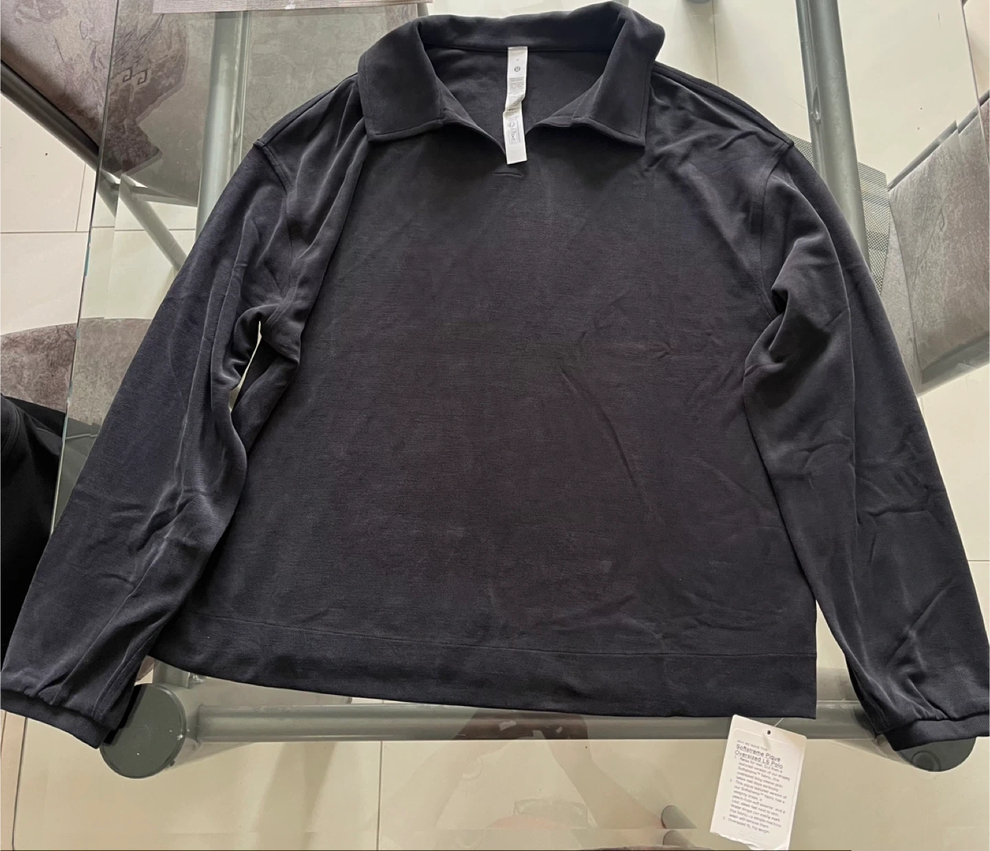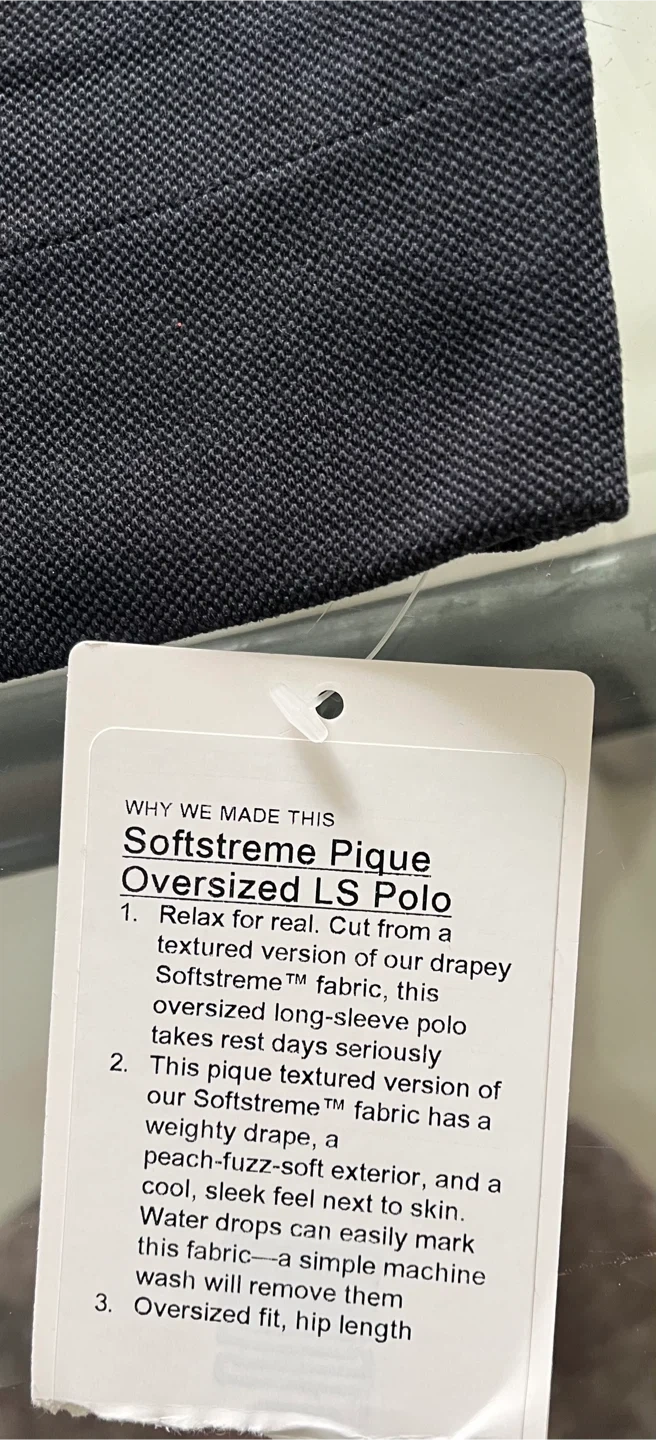 10Selling a Lululemon Softstreme Pique Oversized Long Sleeve Polo in size medium It's cut from a textured version of Lululemon's drapey Softstreme fabric. This pique textured version has a weighty drape, a peach-fuzz-soft exterior, and a cool, sleek feel next to skin. Colour: Black Brand New Never Worn
