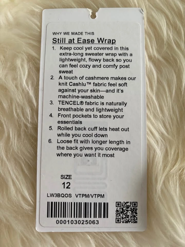 Lululemon Still at Ease Wrap - Size 12 - Mauve