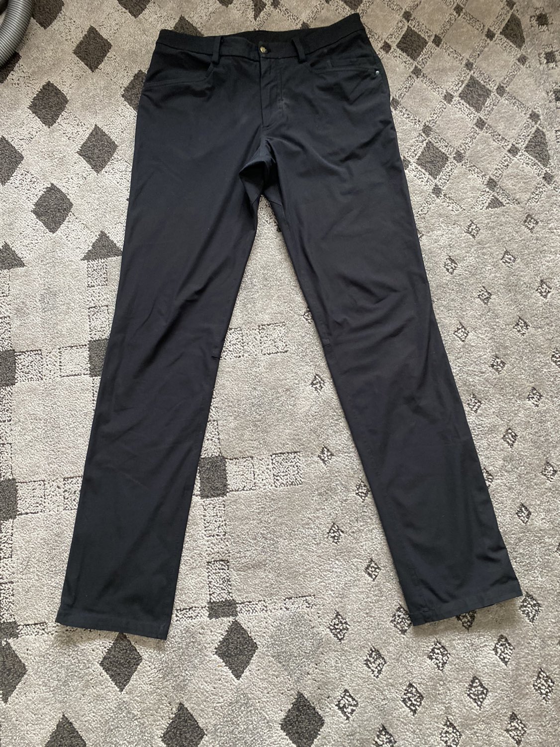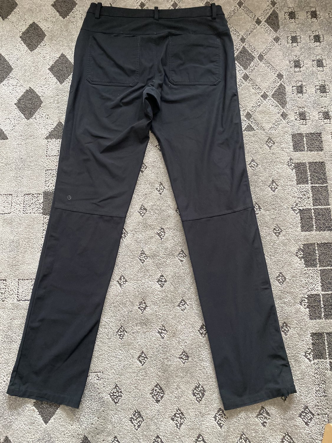 Show allLululemon Straight Leg Pants Black leggings women’s sz 34 waist
