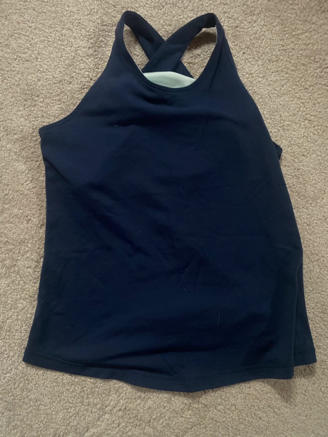 65Selling a Lululemon tank top in great condition! I believe it’s a size 6, tag is faded though, and comes in a nice navy blue colour. Perfect for workouts or casual wear!
