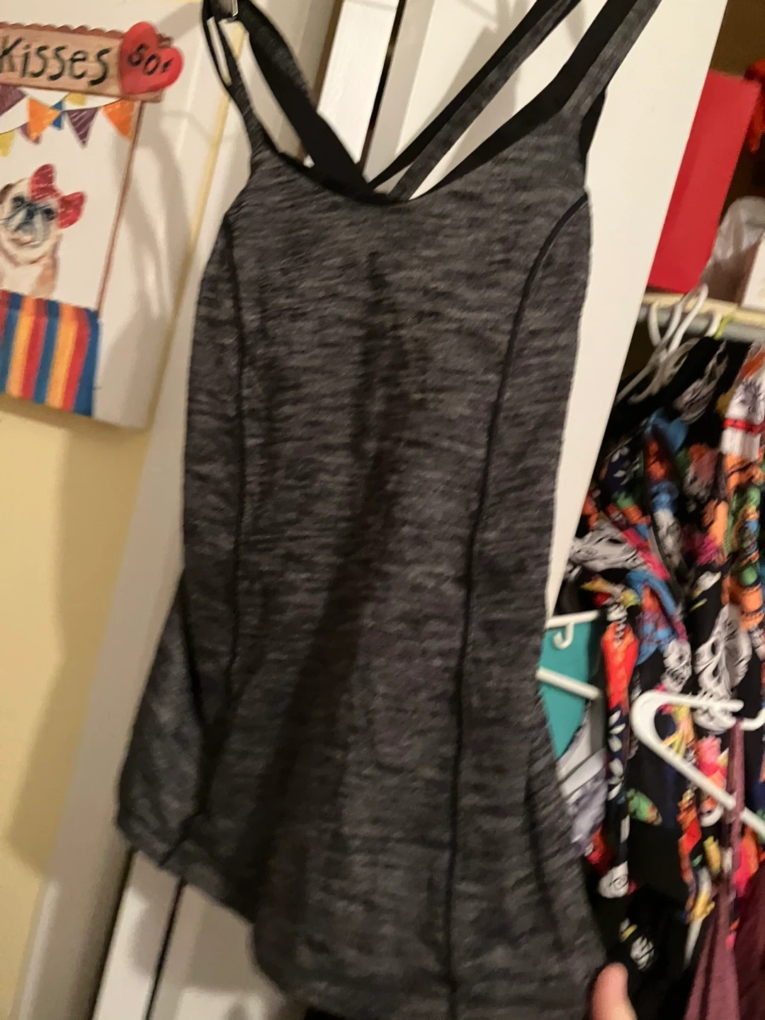 Selling a Lululemon tank top in size 6. It's in great condition and ready for a new home! The top features a built-in bra and a stylish strappy back. Perfect for workouts or casual wear!
