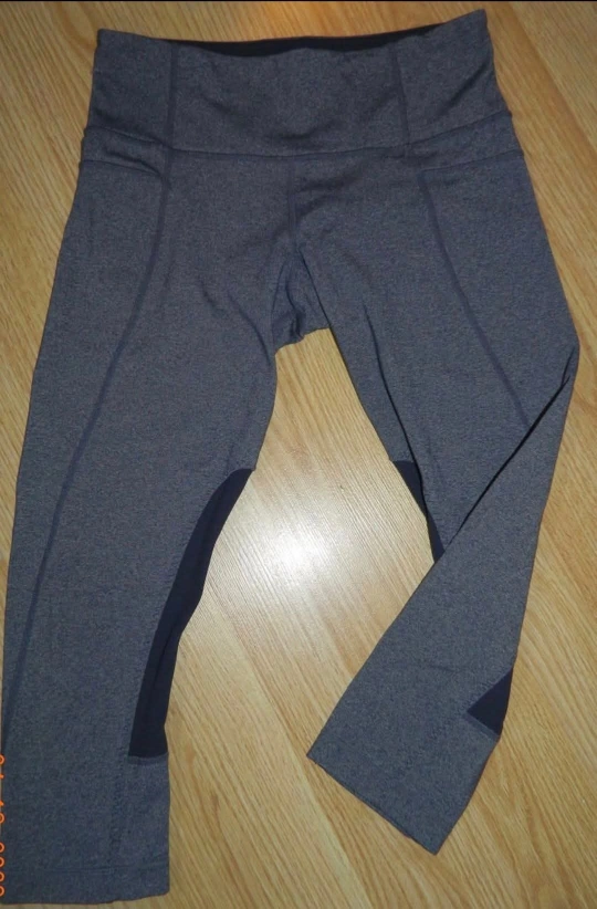 Selling a pair of gently used Lululemon leggings. They are a stylish grey colour and in great condition! Perfect for workouts or just lounging around the house size 6 like a heathered blue