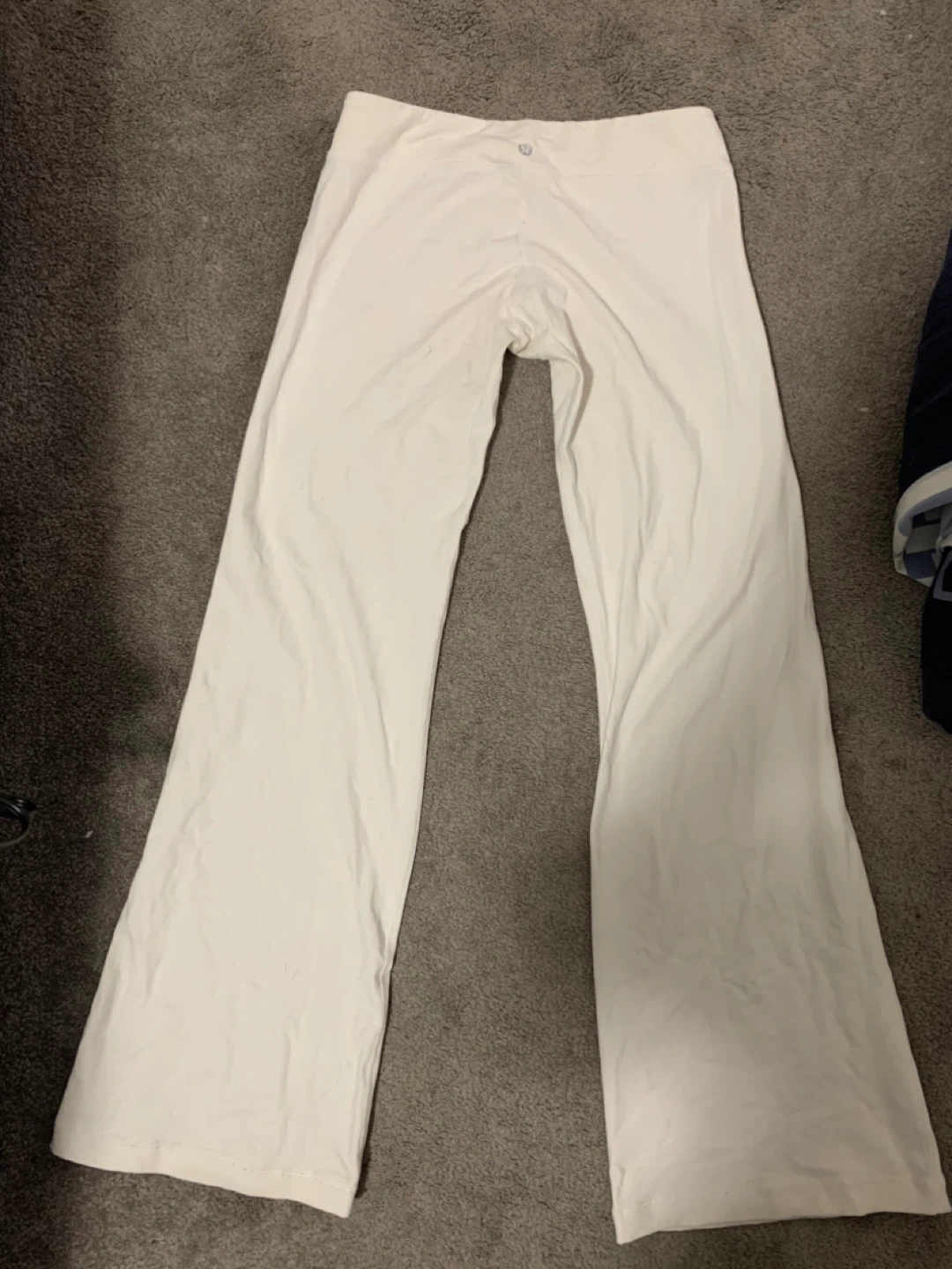 10These are a pair of Lululemon yoga pants in white! They are in great condition and ready for a new home. Perfect for yoga, workouts, or just lounging around the house