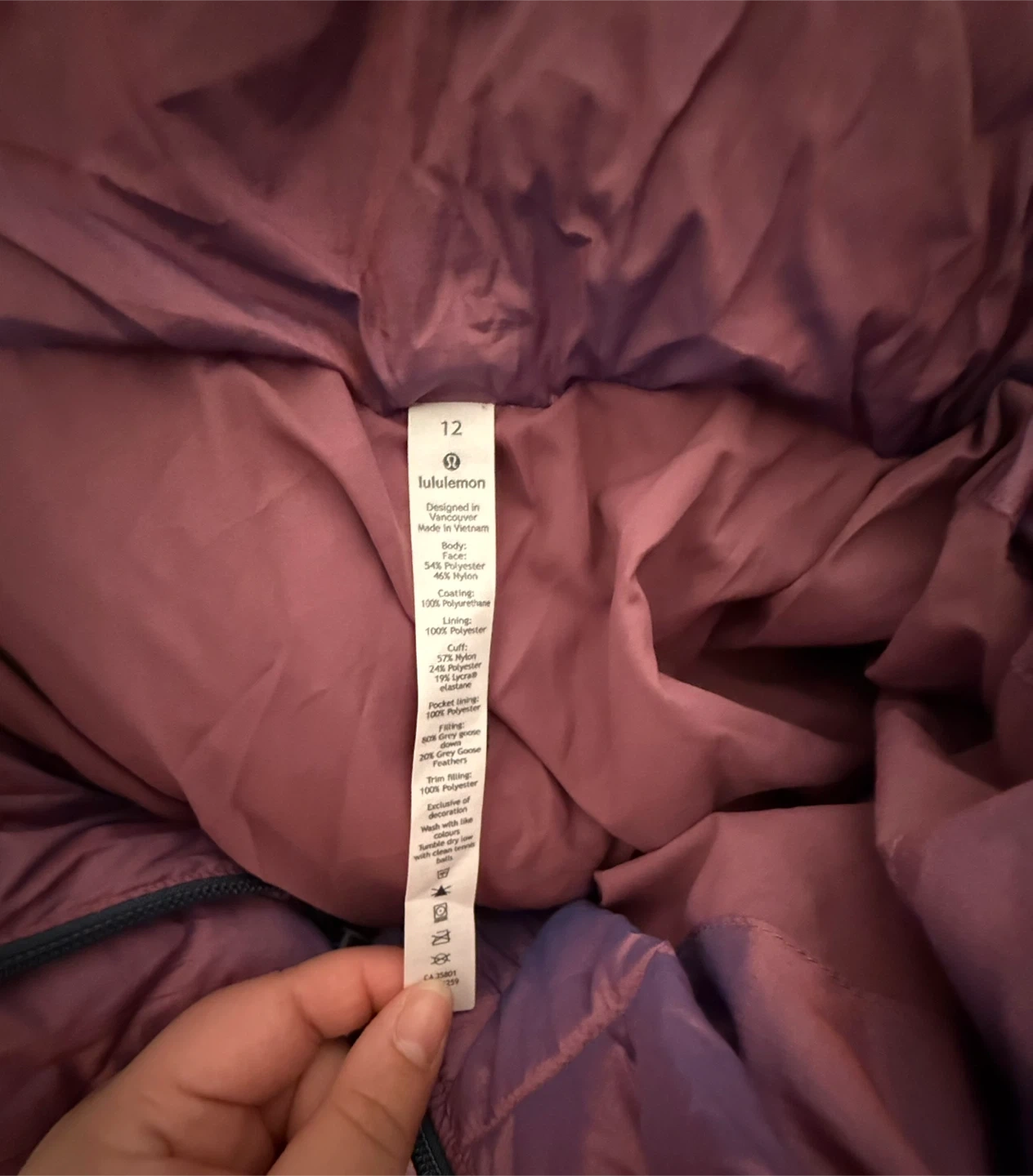 Lululemon "Pack It Down" jacket Size 10 (hooded version)
