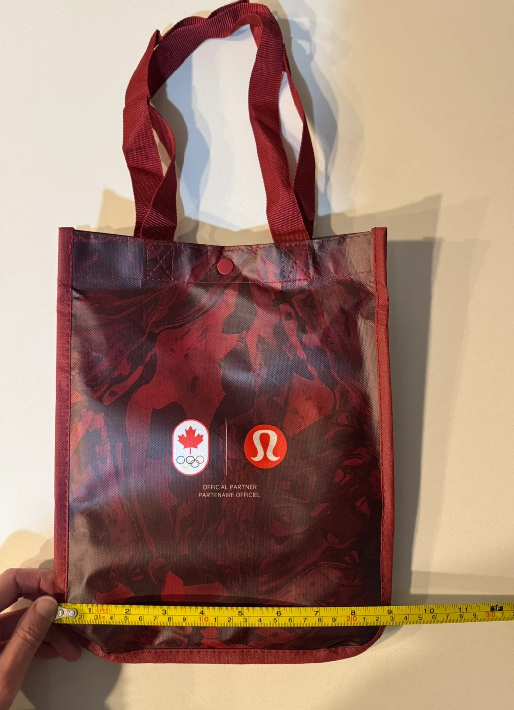 44ποΈ Lululemon x Olympics Tote Bag_New ποΈ This Lululemon tote bag is a collaboration with the Olympics! It's a beautiful red colour and perfect for carrying your essentials. The bag features the Canadian Olympic logo along with the Lululemon logo. Itβs in great condition and ready for a new home!