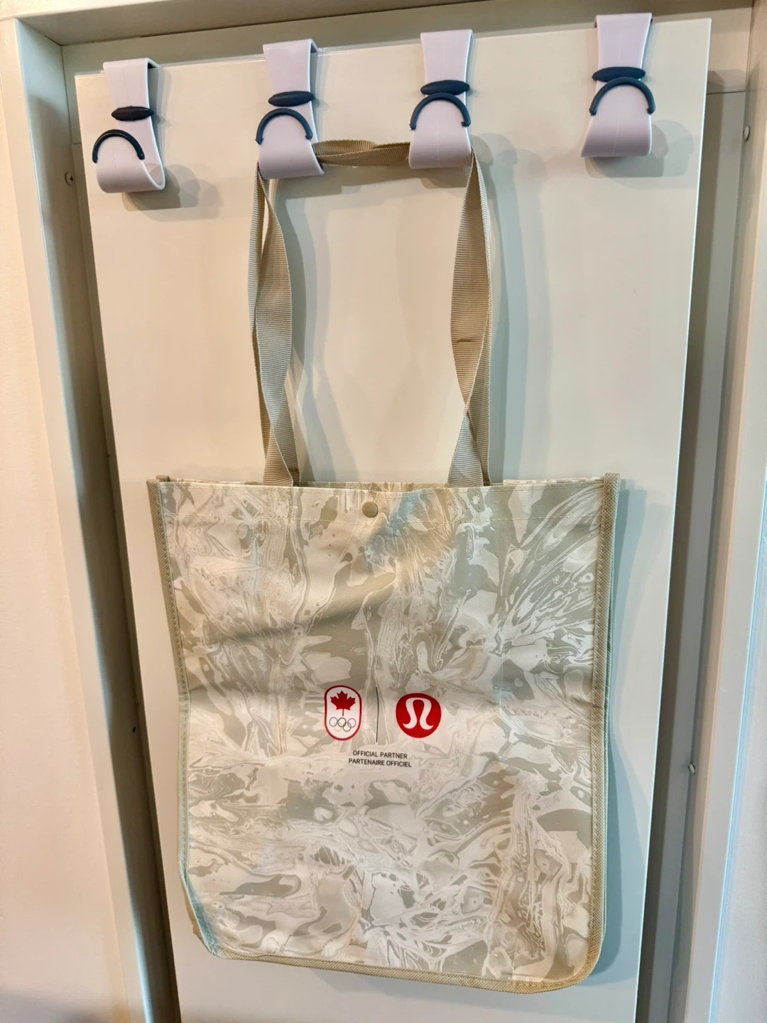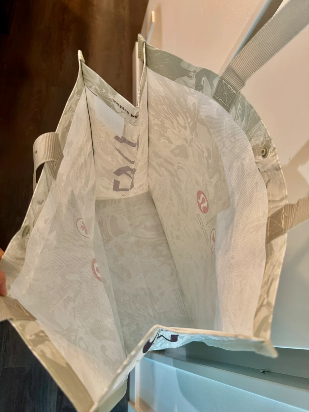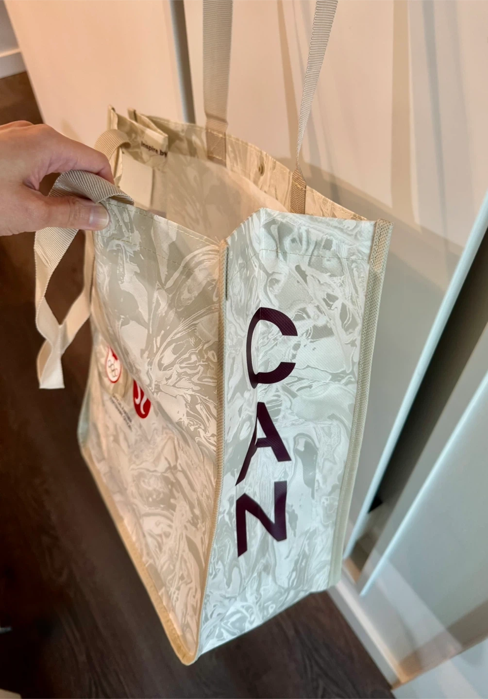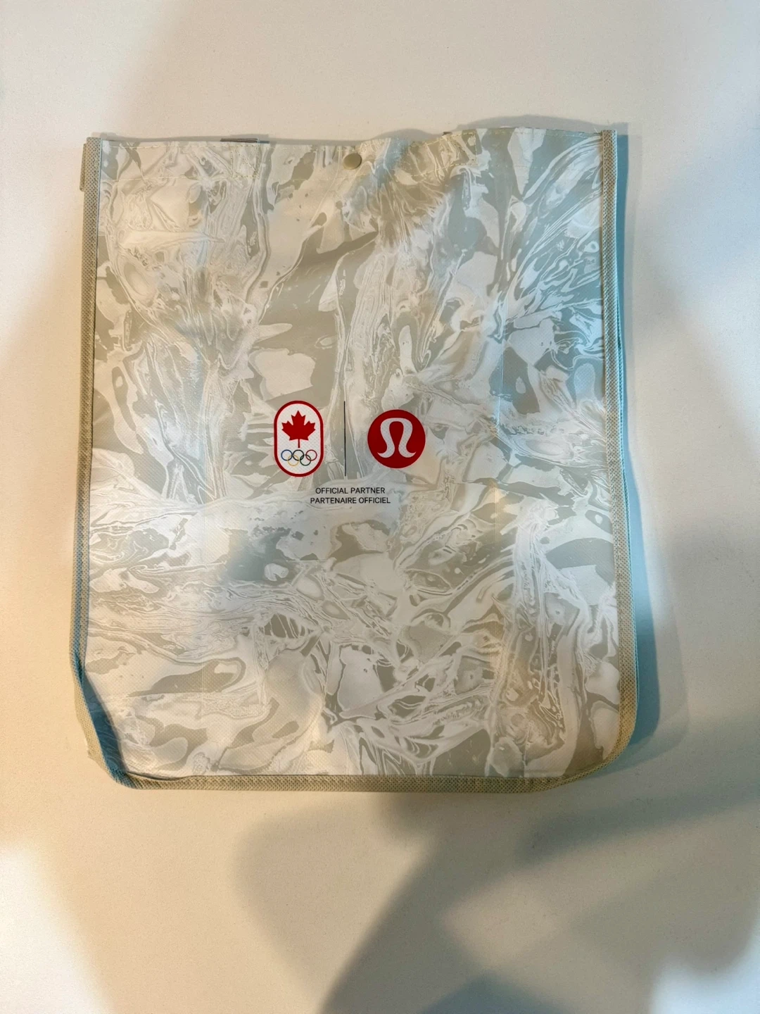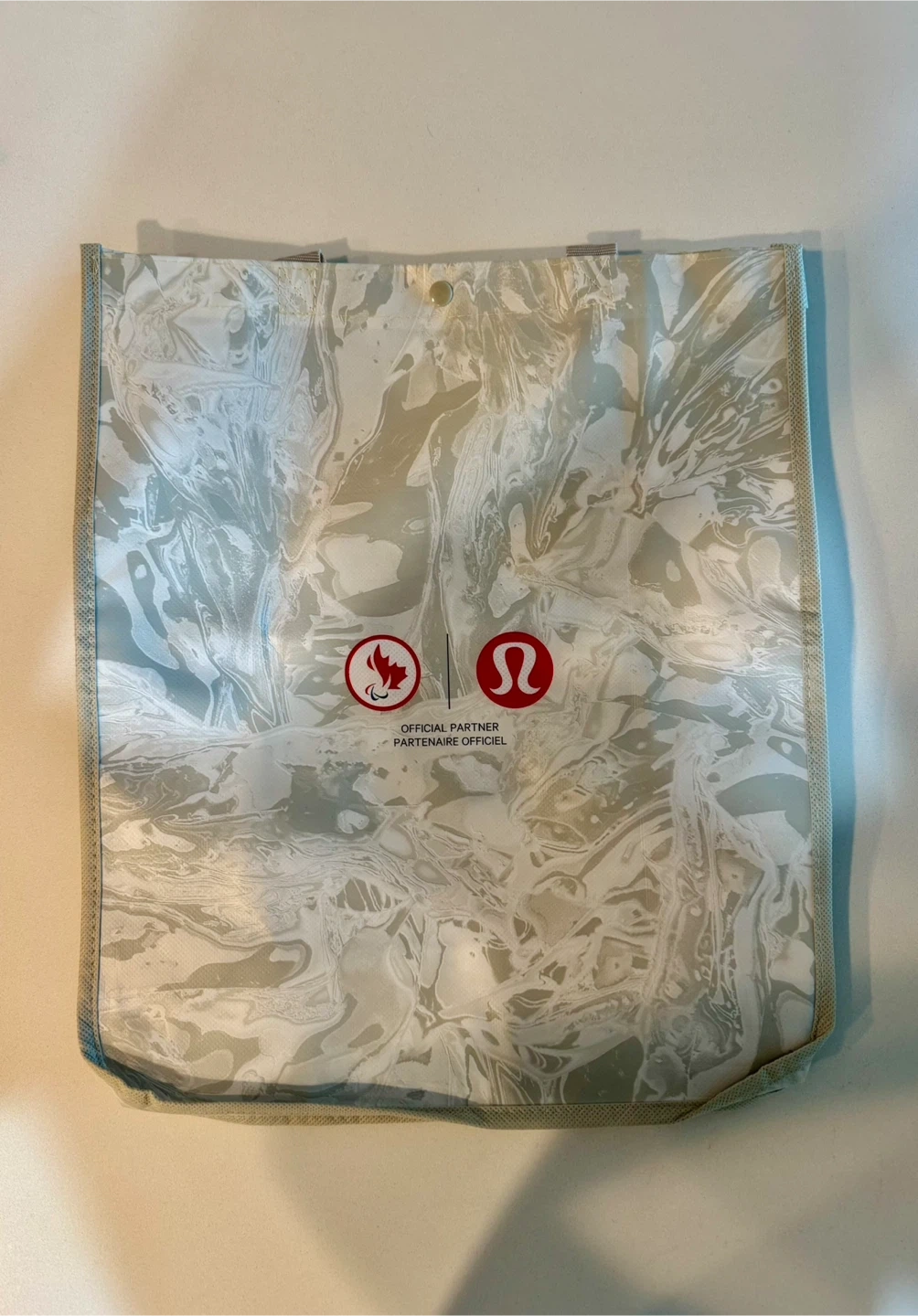 44ποΈ Lululemon Tote Bag - Marble Print ποΈ Lululemon tote bag with a marble print design! It features the Lululemon logo alongside the Canadian Olympic team logo, noting that it's an official partner. Great for carrying your essentials!