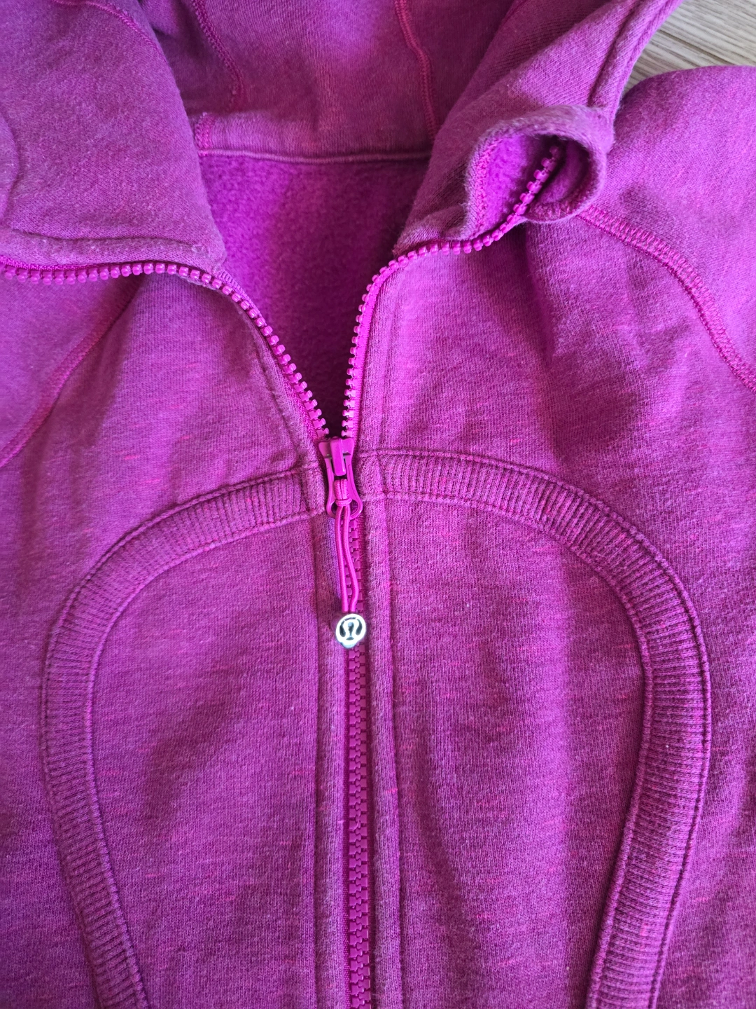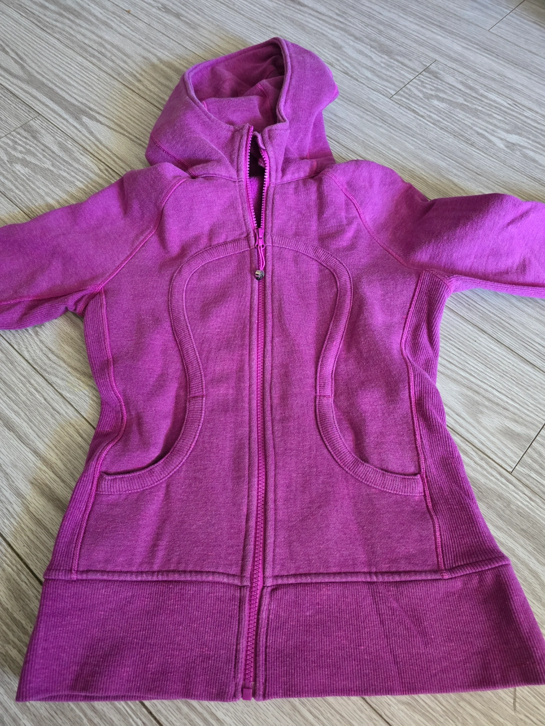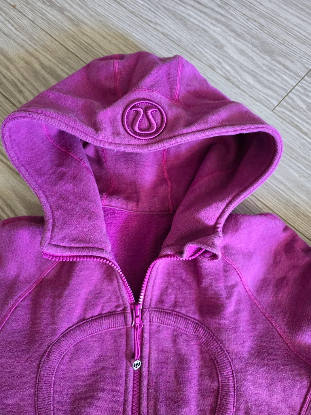 Pink zip-up hoodie. Features pockets and a hood. A perfect piece to cozy up in after a long day.