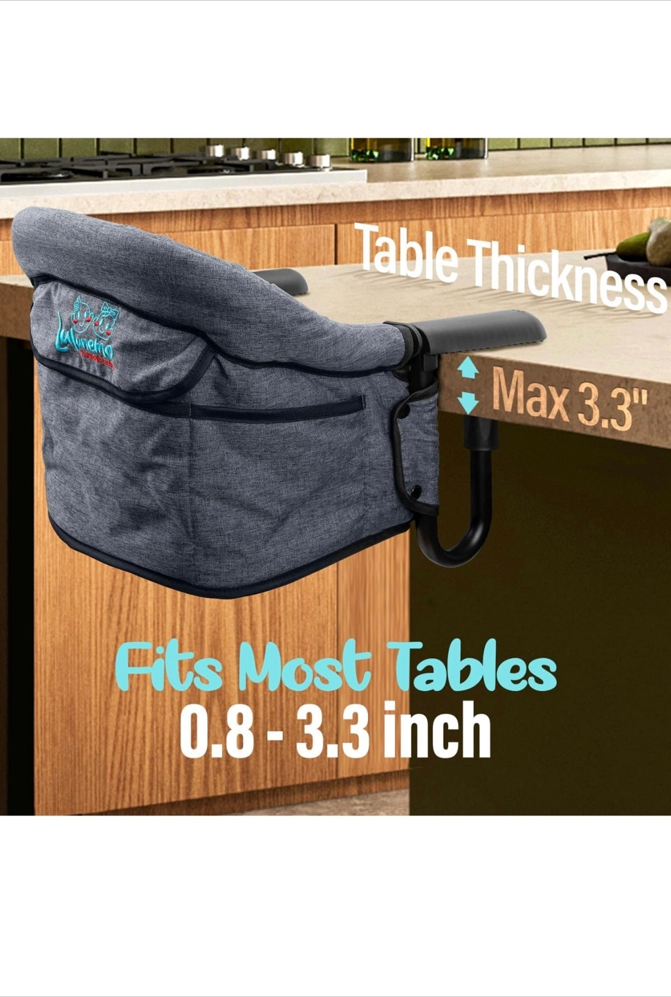 13Selling a Lulunemo hook-on table high chair! It's in great condition and ready for a new home. This chair is perfect for saving space and making mealtime easy. It fits most tables with a thickness of 0.8 - 3.3 inches. Trusted for safety!