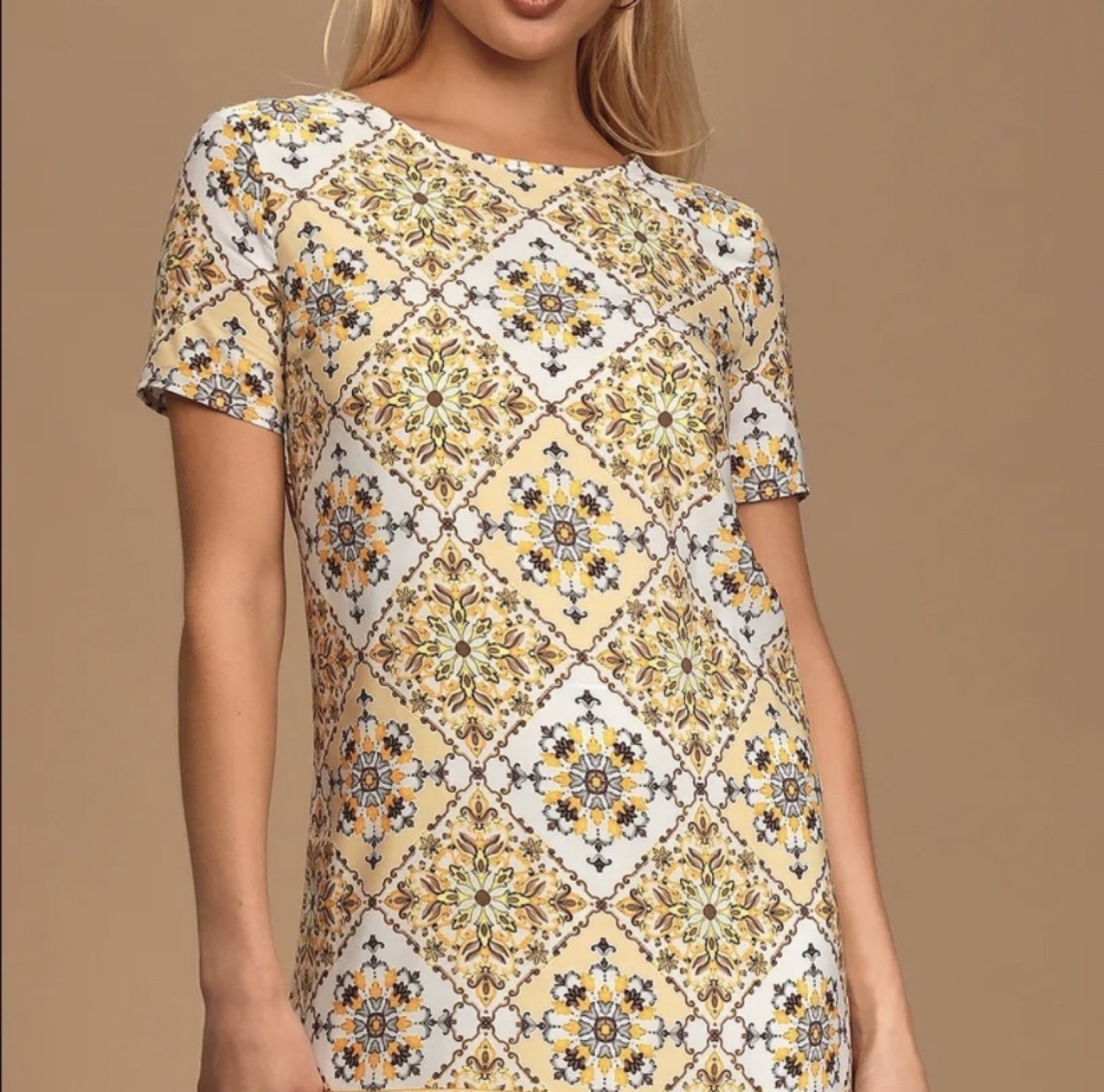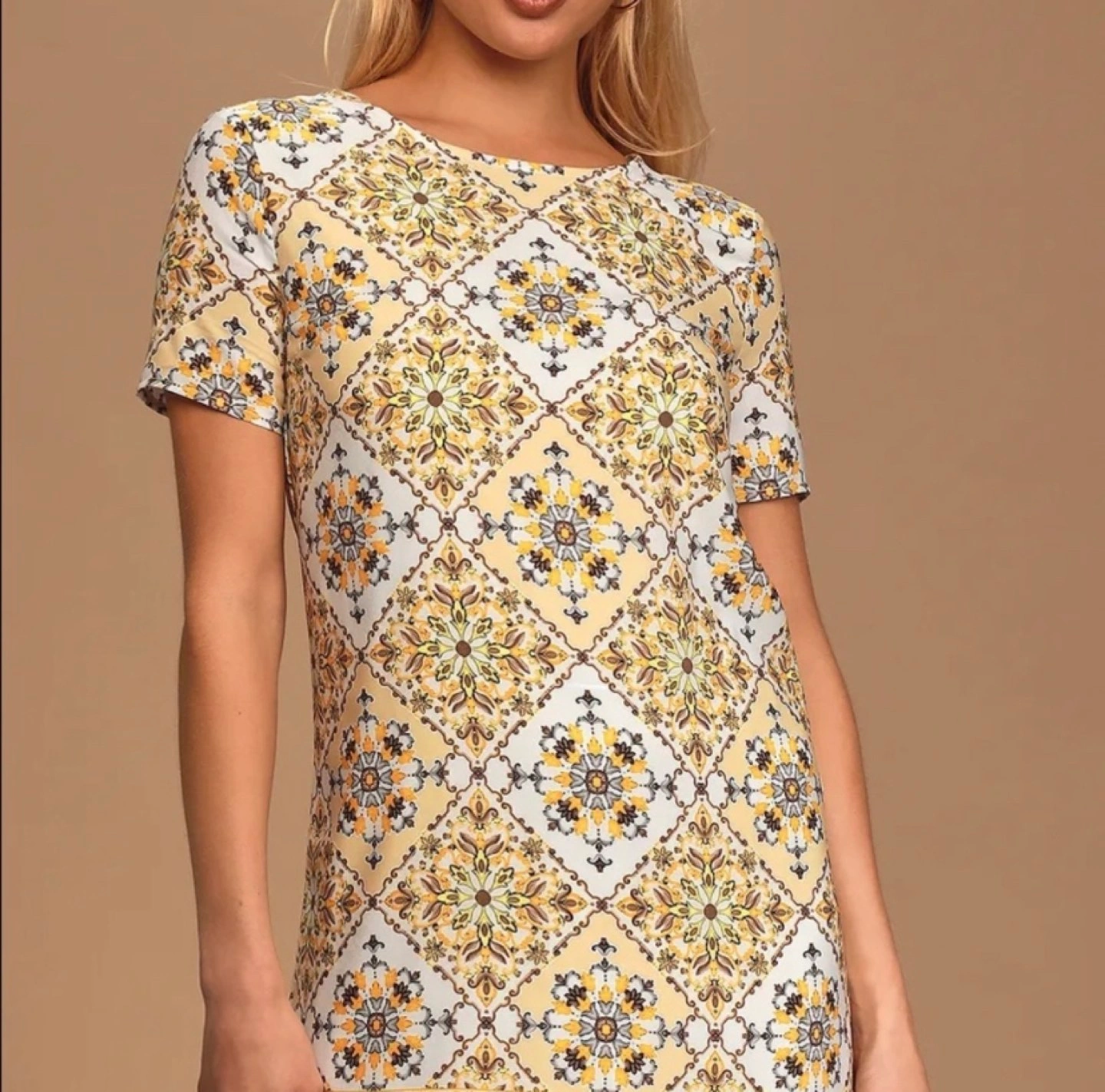 Brand new dress from Lulu’s with tags still on. Yellow tile print in size xs. Original price was $85