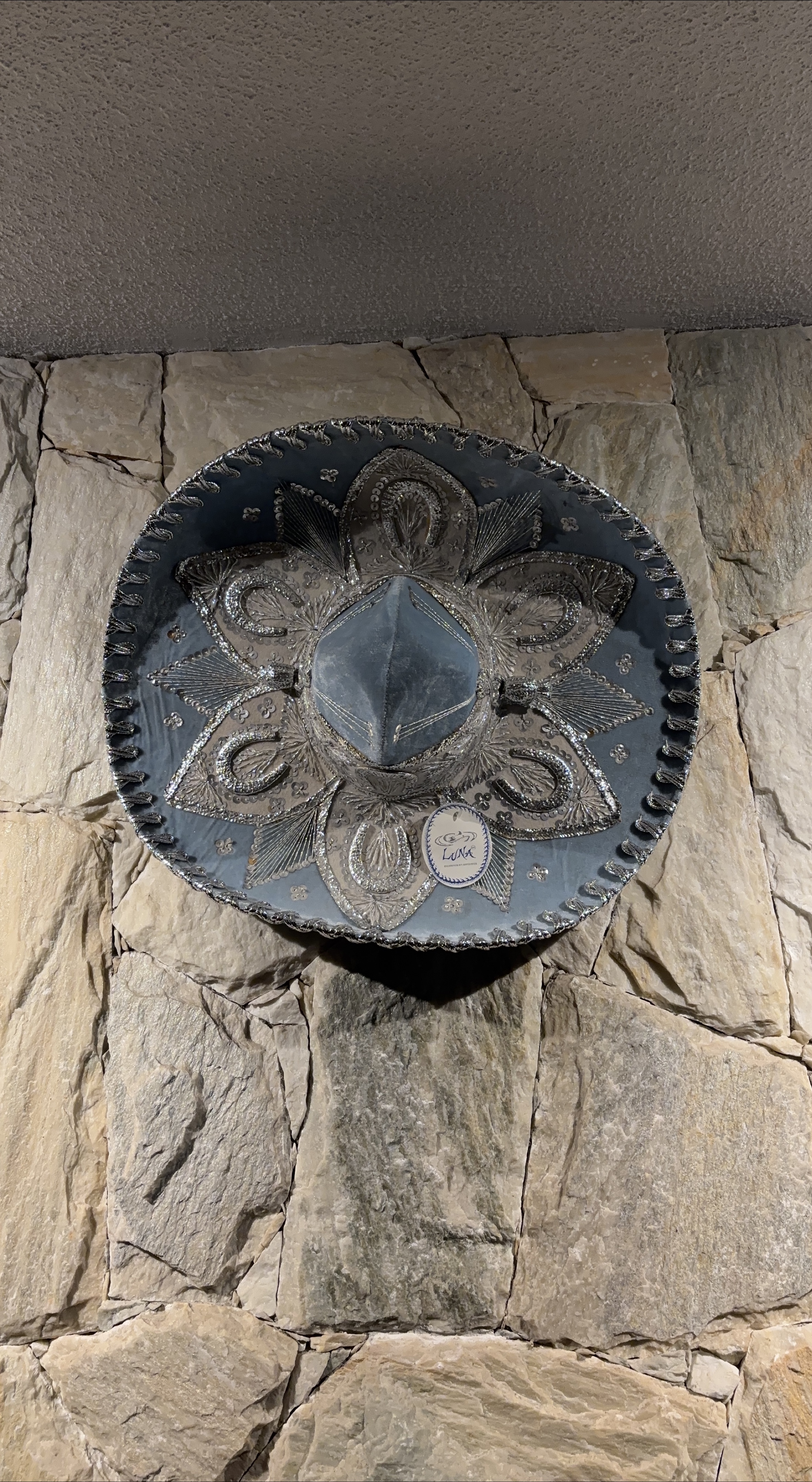 Selling a Luna Collection sombrero. It's a beautifully decorative with intricate silver detailing on a blue base.