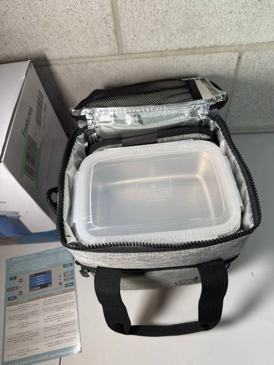 113‼️ All sales are final – no returns 💵 Cash only 🚚 Free Delivery In GTA over 50$ Condition: NEW LunchEAZE Self-Heating Electric Lunchbox – 940 mL, Caviar Black Cordless, battery-powered lunchbox that automatically heats your meal on schedule—perfect for work, travel, or outdoor use. Includes two removable stainless steel meal containers, insulated carrying bag, and charger. Made from BPA-free, food-grade materials for safe, convenient meal prep anywhere.