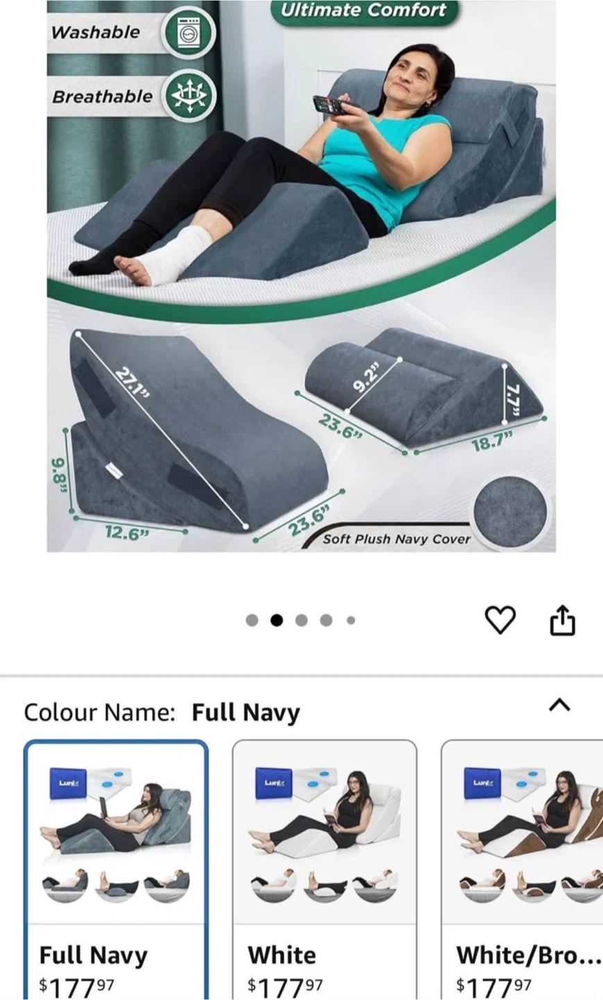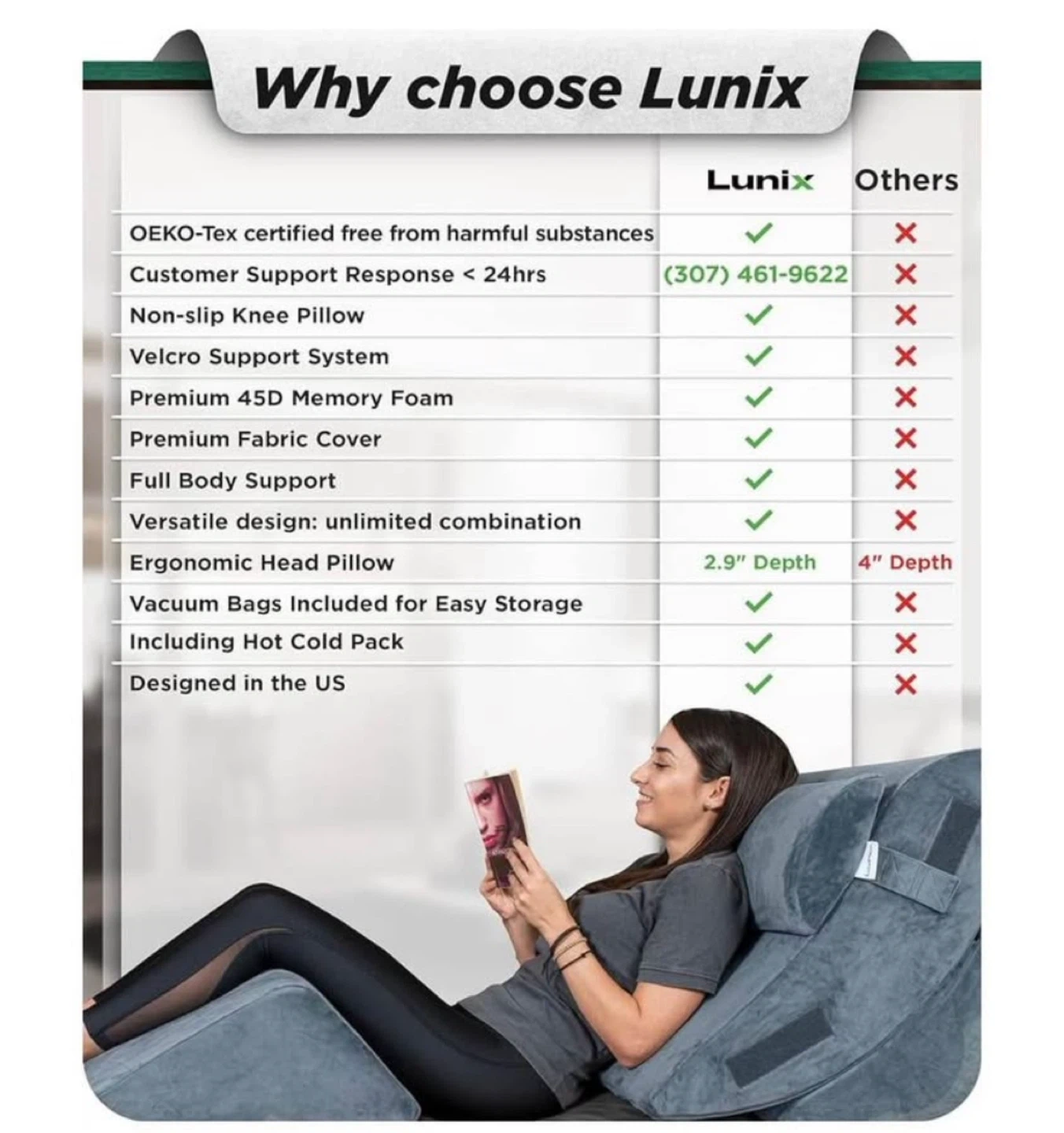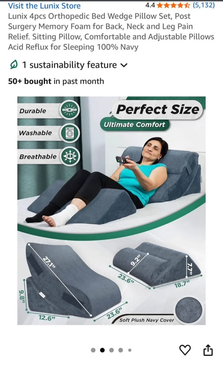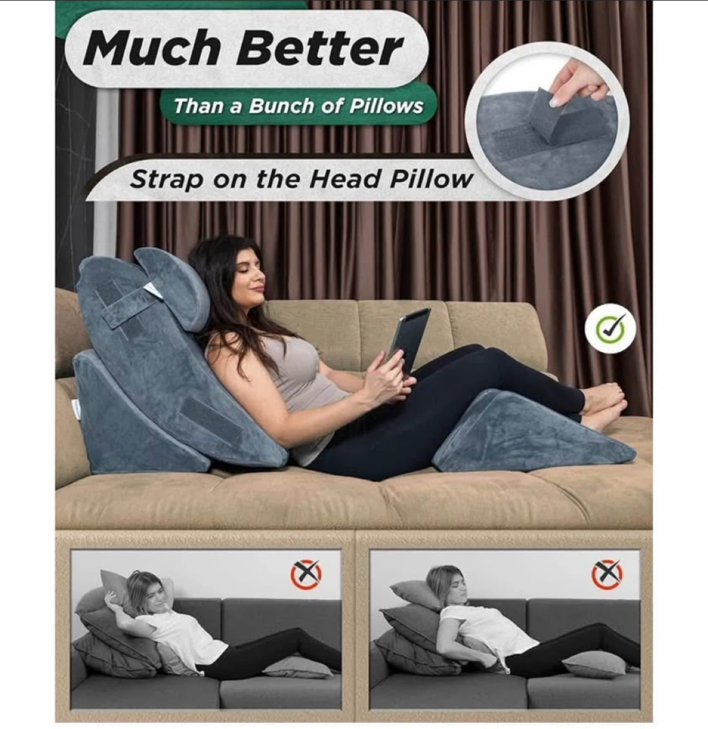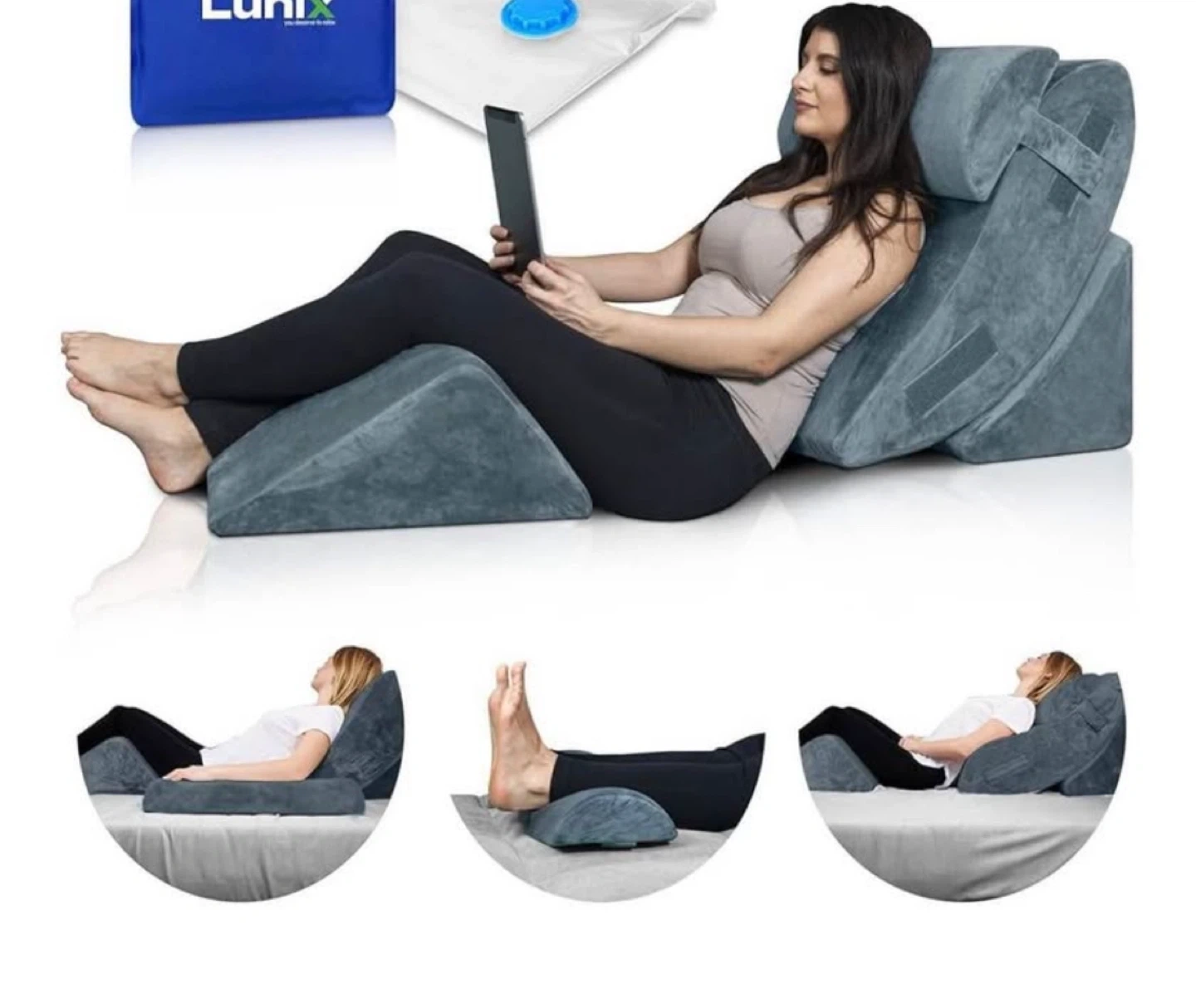 51While other bed wedge pillows are too firm and uncomfortable, fail to relieve post-surgery pain or slide down making it impossible to fall asleep or relax in a pain-free position, the Lunix LX5 4pcs Orthopedic Bed Wedge Pillow Set is made of premium 45D memory foam to quickly conform to your body shape and height. The head pillow's unique Velcro strap prevents slipping and provides hours of comfort. You deserve painless and relaxing days! If you want to recover quicker after shoulder, hip or, rotator cuff surgery, get rid of lower back pain, muscle spasms, or snoring, and reduce acid reflux or GERD, Lunix has designed the most effective orthopedic wedge pillows! No matter if you want to sleep, read or just watch TV more comfortably, you will feel the wonders of a natural upright spine alignment on your tight neck, lower back, or hips. Our mission is to improve your health! The LX5 premium recliner wedge pillows have been tested post-surgery by over 500 volunteers to ensure a comfortable reclined position. Our thinned head pillow (2.9”) releases neck pressure and the higher knee rest allows for full-body relaxation. Forget about arthritis pain instantly: “These pillows are addicting!” Memory Foam,Post Surgery,Bed Wedge Pillo 72.4L x 59.9W Centimetres -smoke free, pet free home -cash only -pick up only -pick up near Cambie shoppers Vancouver