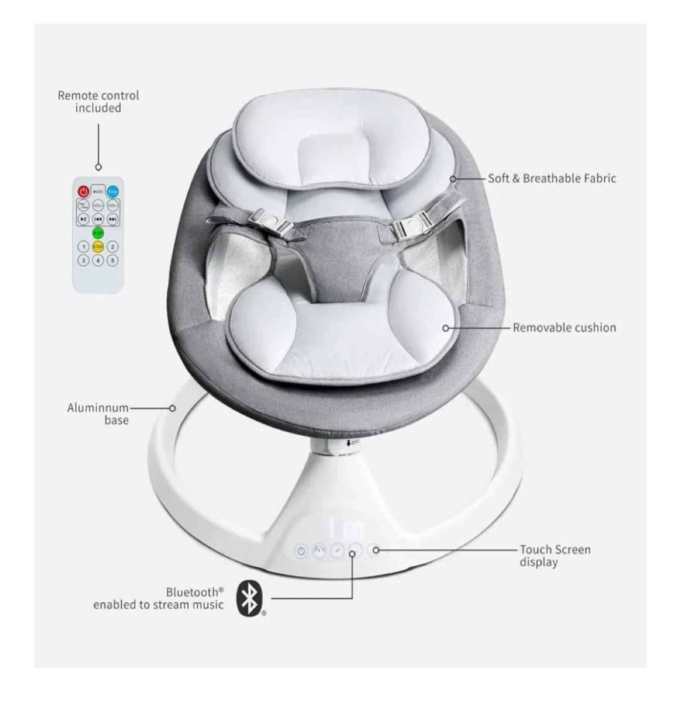 500Brand new. Colour Grey. Model WS-HB18 Unique Motions, Natural Sway Baby Swing for Newborn, LED Touch Panel,Music Speaker,Remote Control