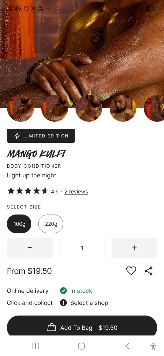 84Inspired by the classic Indian dessert, the Lush Mango Kulfi Body Conditioner features a juicy blend of mango, cocoa, and illipe butters for skin. It's designed to leave your skin feeling soft and glowing, with a touch of shimmer. It's made in Canada and contains jojoba oil, sourced from Peru.