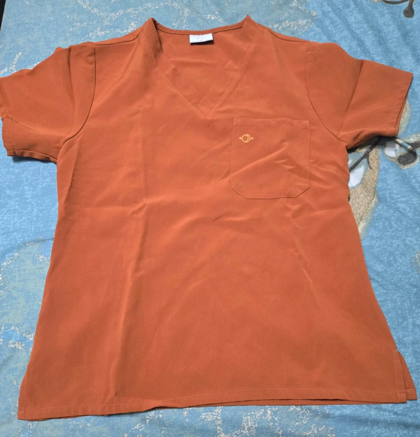 10Selling a Luuna scrub set in a vibrant orange colour! The set includes both the top and the pants, and they're in great condition. Top Size small. Bottom x-small. Perfect for anyone in the medical field or for other work requiring scrubs